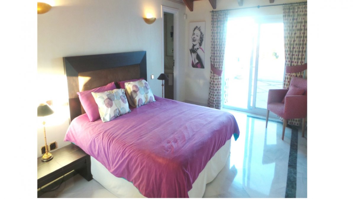 Elegante ático dúplex en una de las mejores urbanizaciones de la Milla de Oro de Marbella, a dos minutos en coche de Puente Romano, cinco de Marbella centro y cinco de Puerto Banús. El complejo goza de cuatro piscinas comunitarias, una de las cuales está climatizada, jardines tropicales, seguridad 24 horas, snack bar, gimnasio y sauna.