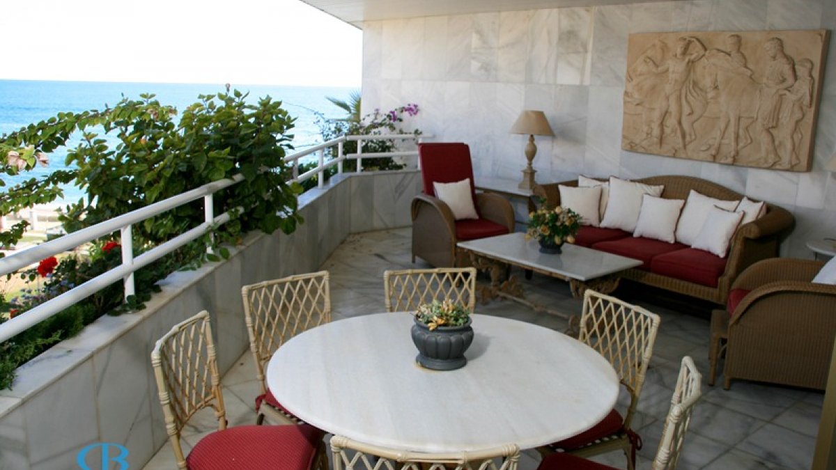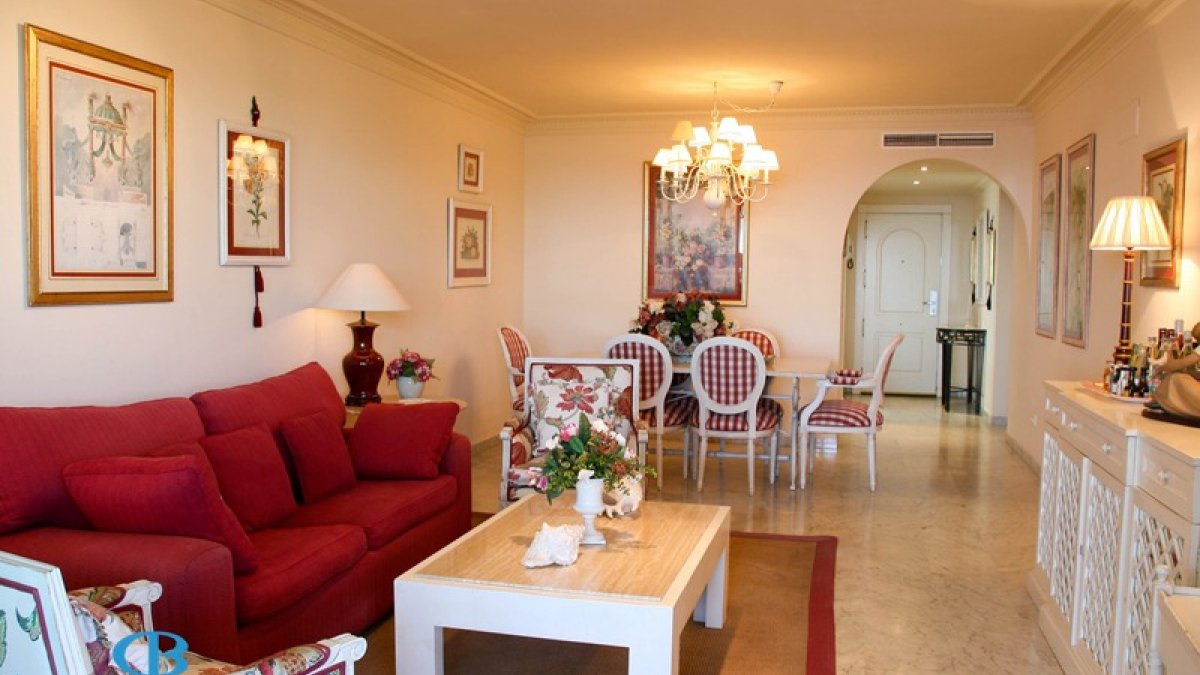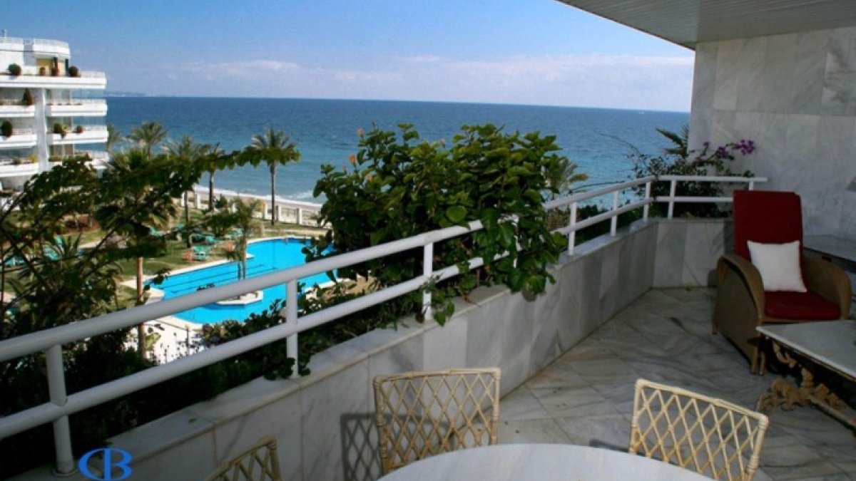 Este magnífico apartamento de 2 dormitorios está dentro de la exclusiva urbanización de Playa Esmeralda, situada en la Milla de Oro, a poca distancia de Puerto Banús y con acceso directo al famoso paseo marítimo que une el puerto con Marbella. Piscina y jardines comunitarios, seguridad 24 horas y el gimnasio son algunas de las características adicionales del apartamento. La propiedad consta de un luminoso salón-comedor, con acceso directo a una terraza orientada al Sur con espectaculares vistas al mar y cocina completa. El dormitorio principal con su baño en-suite también conduce a la terraza. El apartamento tiene además un segundo dormitorio con baño, cocina, A/C.
