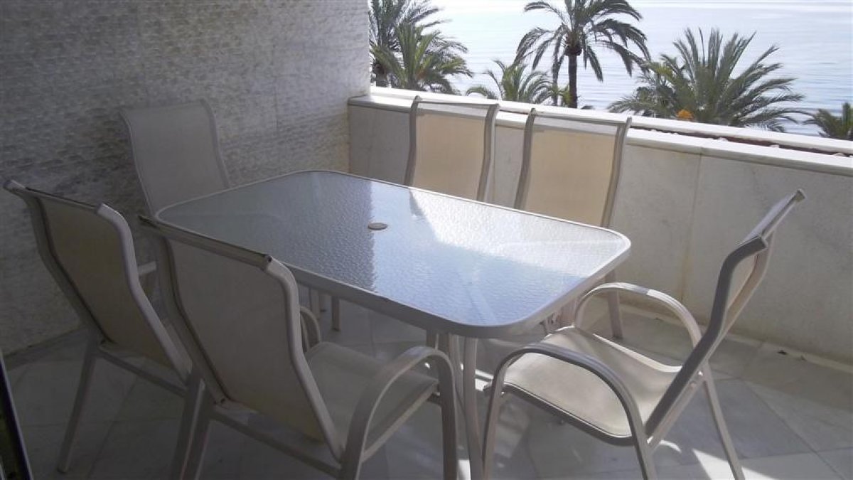 Apartamento de 2 dormitorios, 2 baños con 127 m2. Se compone de hall de entrada con armario, cocina completa, salon comedor, dormitorio secundario, baño común y dormitorio principal con baño completo en-suite. La terraza tiene orientación Sur y disfruta de vistas directas al mar.