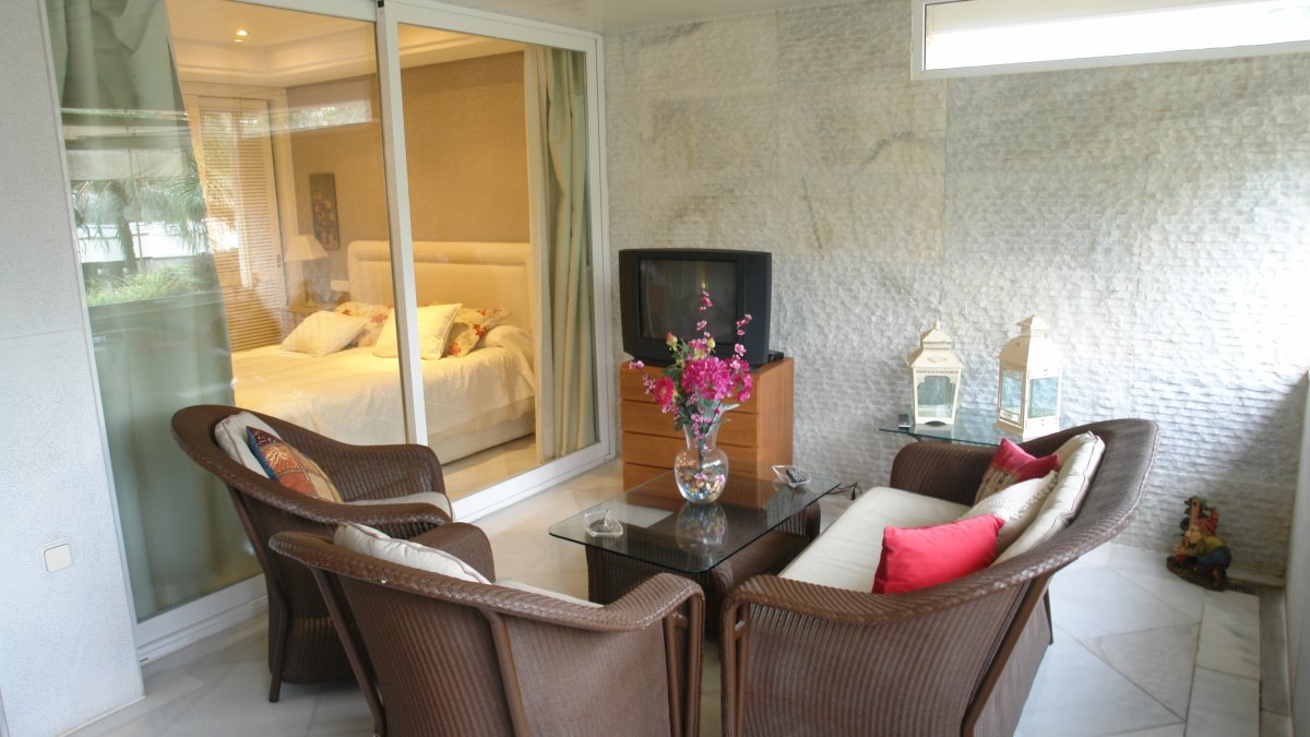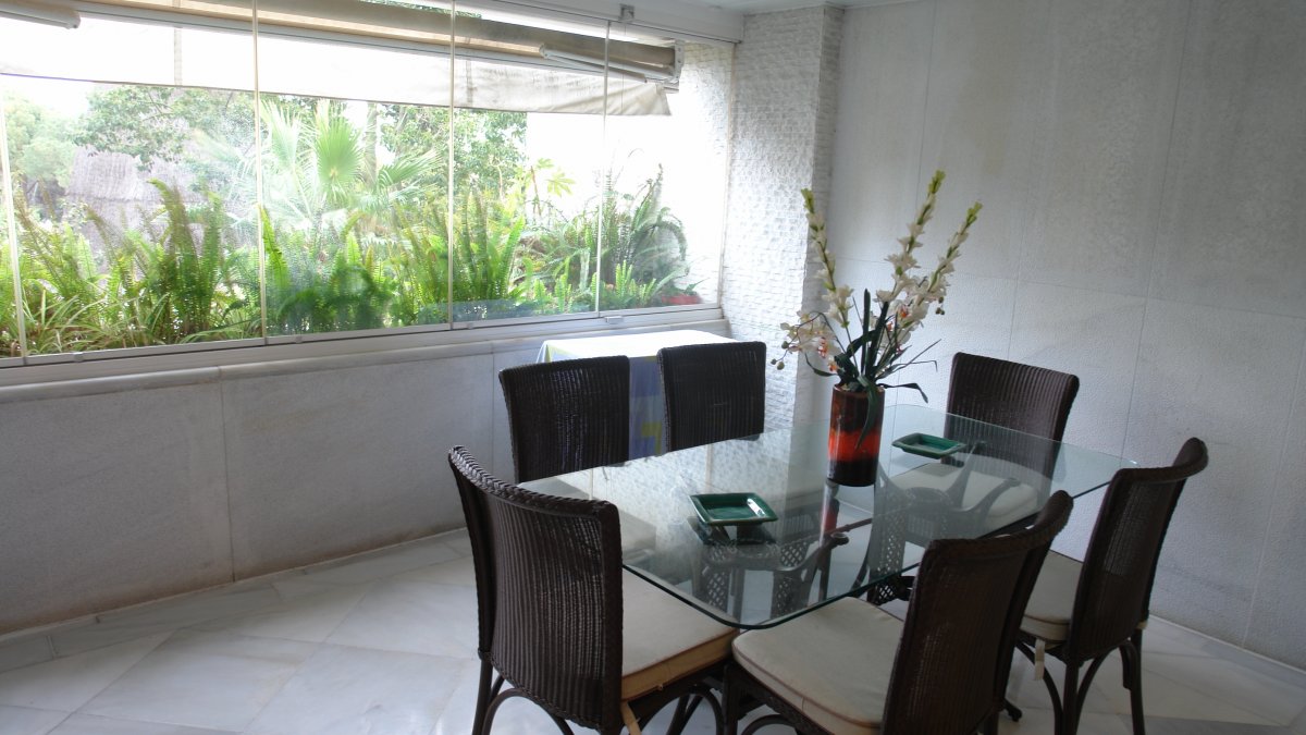 La terraza tiene orientación Este con vistas a jardín y vista parcial al mar. El complejo dispone de Seguridad 24h, Conserjería, Parking de invitados, gran hall de visitas, piscina de verano, piscina climatizada, jacuzzi, sauna ,gimnasio y acceso directo a la playa. A corta distancia del edificio disponemos de supermercados, farmacia, bancos, restaurantes, cafeterías y todo tipo de servicios.
