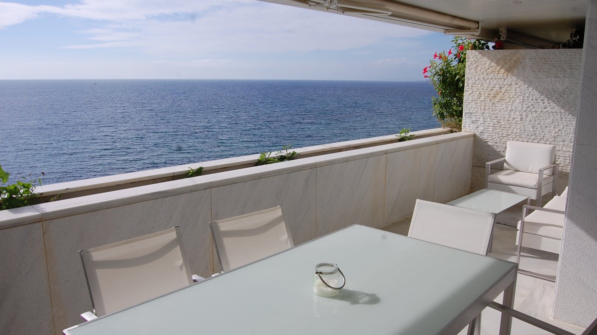 Apartamento de 2 dormitorios, 2 baños con 127 m2. Se compone de hall de entrada con armario, cocina completa, salon comedor, dormitorio secundario, baño común y dormitorio principal con baño completo en-suite. La terraza tiene orientación Sur y disfruta de vistas directas al mar.