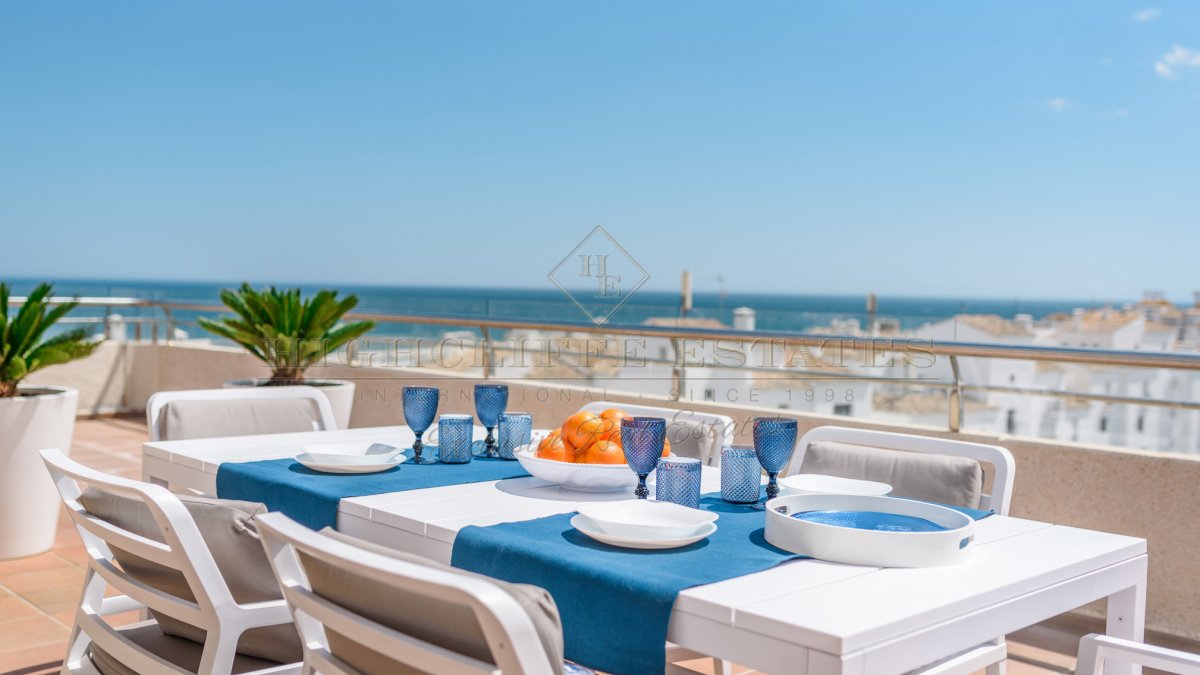Espectacular ático de 3 dormitorios y 2 baños en el corazón de Puerto Banus, a pocos metros de la marina, restaurantes, bares, playas y El Corte Inglés. Cocina completa, Sala TV, Wifi, dormitorio principal con cama de matrimonio y dos dormitorios secundarios con dos camas individuales cada uno. Capacidad 6 personas.