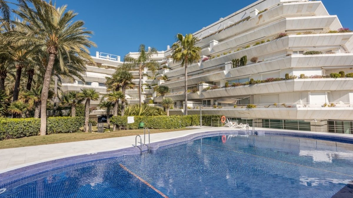 Exclusivo apartamento de 3 dormitorios con vistas frontales al mar y una terraza de 120 m2 situado en una exclusiva comunidad cerrada en el corazón de Marbella. Tiene acceso directo al paseo marítimo a una de las playas de la ciudad de Marbella, conserjería las 24 horas, piscina comunitaria al aire libre frente al mar y jardines tropicales de la naturaleza. Con una superficie total construida de 387 m2, cuenta con 3 luminosas habitaciones y 3 baños, todos ellos en suite. Con orientación de Sur/ Oeste, el apartamento tiene una terraza cubierta de 100m2 con vistas panorámicas al mar y marina. La propiedad está situada cerca de la playa, rodeada de todos los servicios y comercios que solo el centro de la ciudad ofrece .