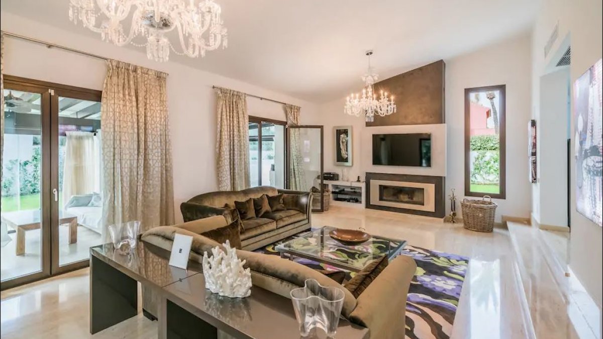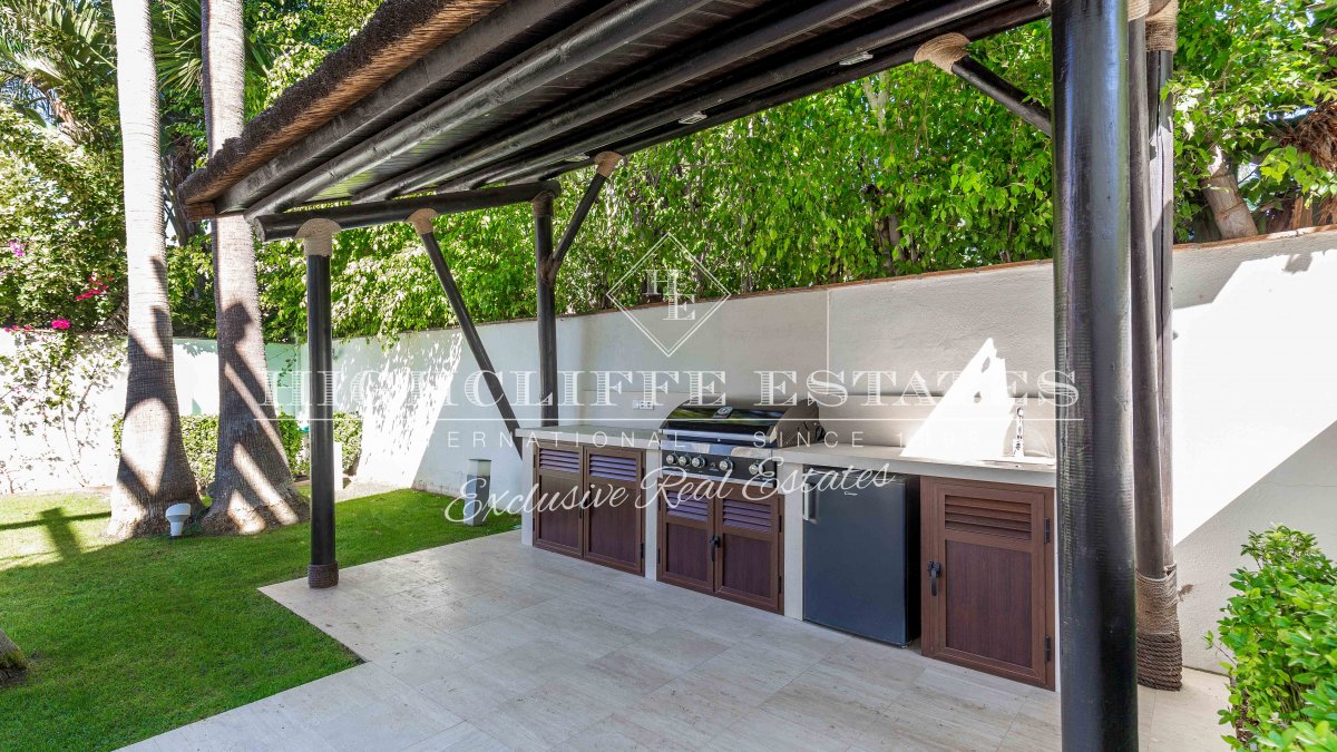 Villa en alquiler en Puerto Banus, Marbella con 4 dormitorios, 3 baños y 2 aseos. Piscina privada en el jardín, garaje para 3 coches. Consta de 603 m² construidos y 1.100 m² de parcela. Elegante salón con TV de grandes dimensiones y chimenea, cocina abierta al comedor, agradable comedor en el jardín, con barbacoa y piscina. Dos dormitorios en planta baja. Planta sótano con amplio cine o sala de juegos para los mas pequeños. Planta superior con dos dormitorios y dos baños en-suite. Se encuentra a poca distancia de Puerto Banus, comercios y de clubes de playa como Mistral y Ocean Club.