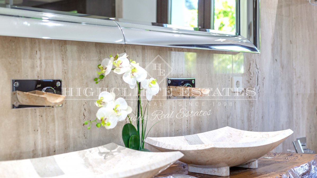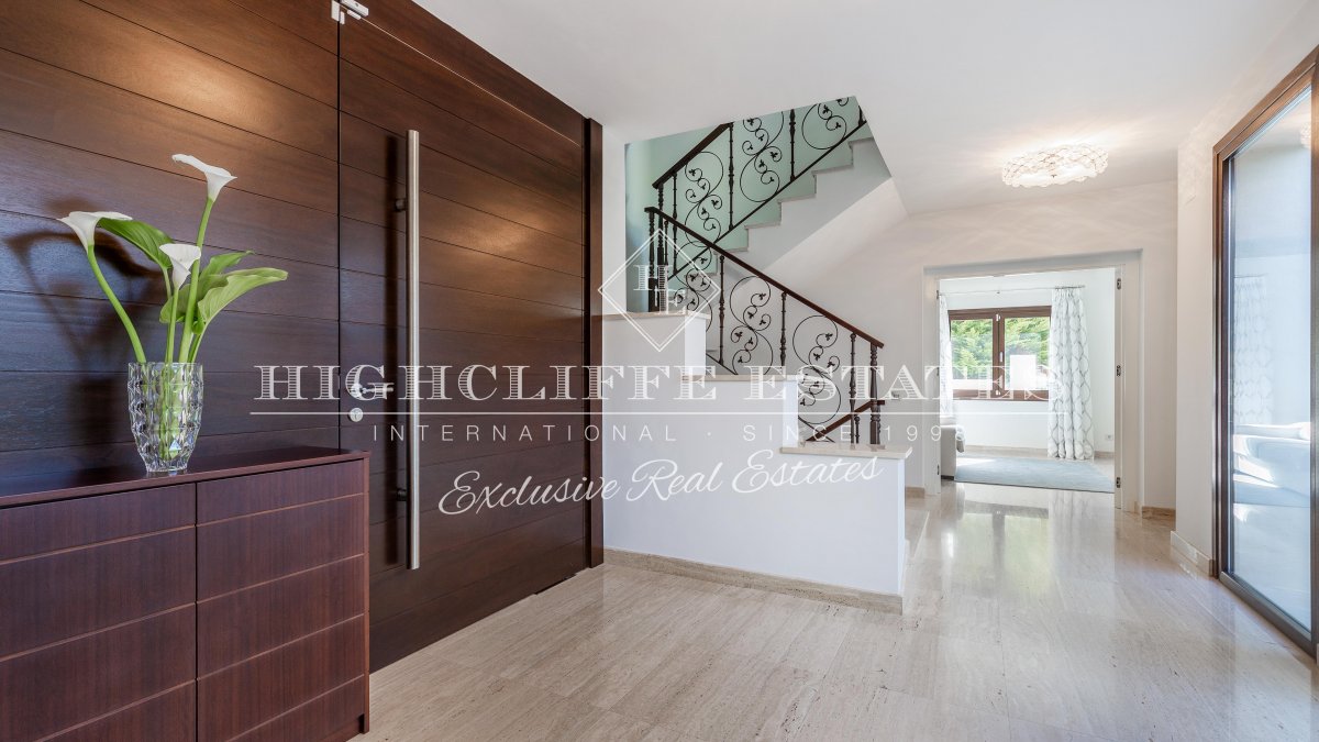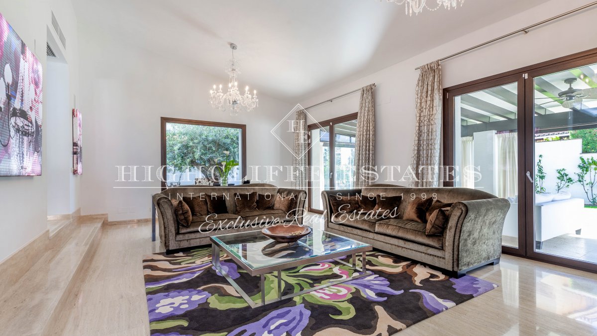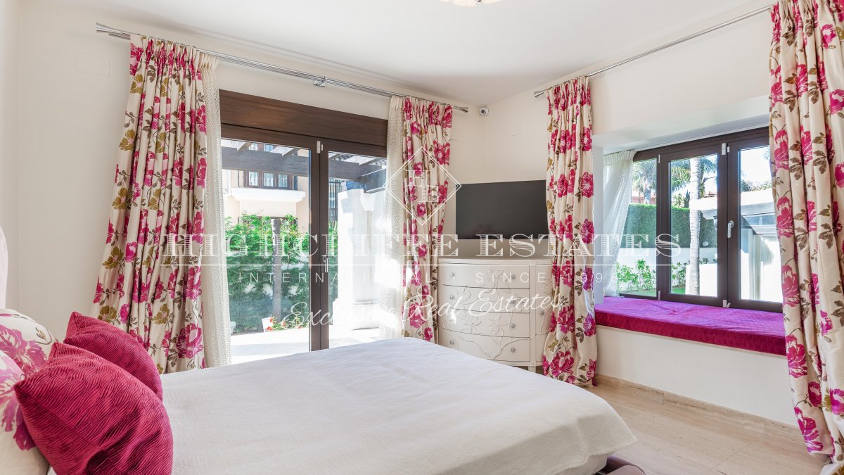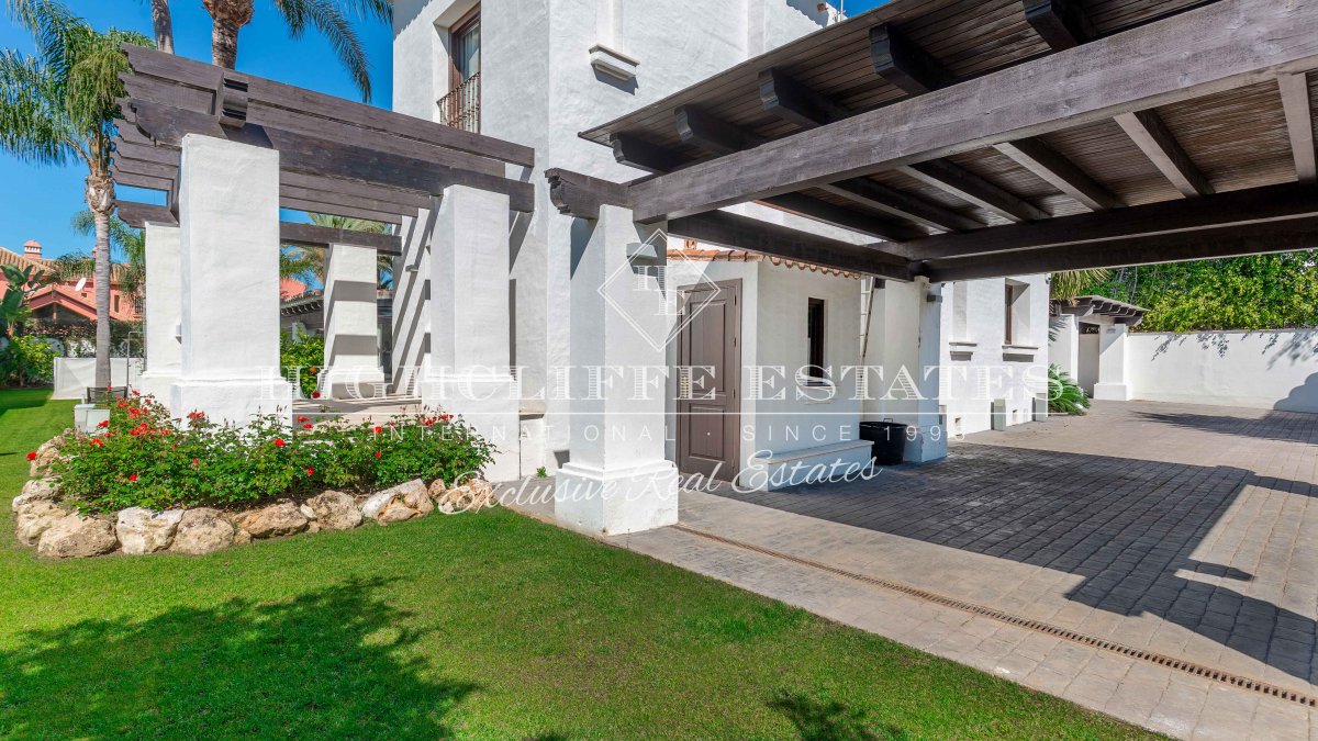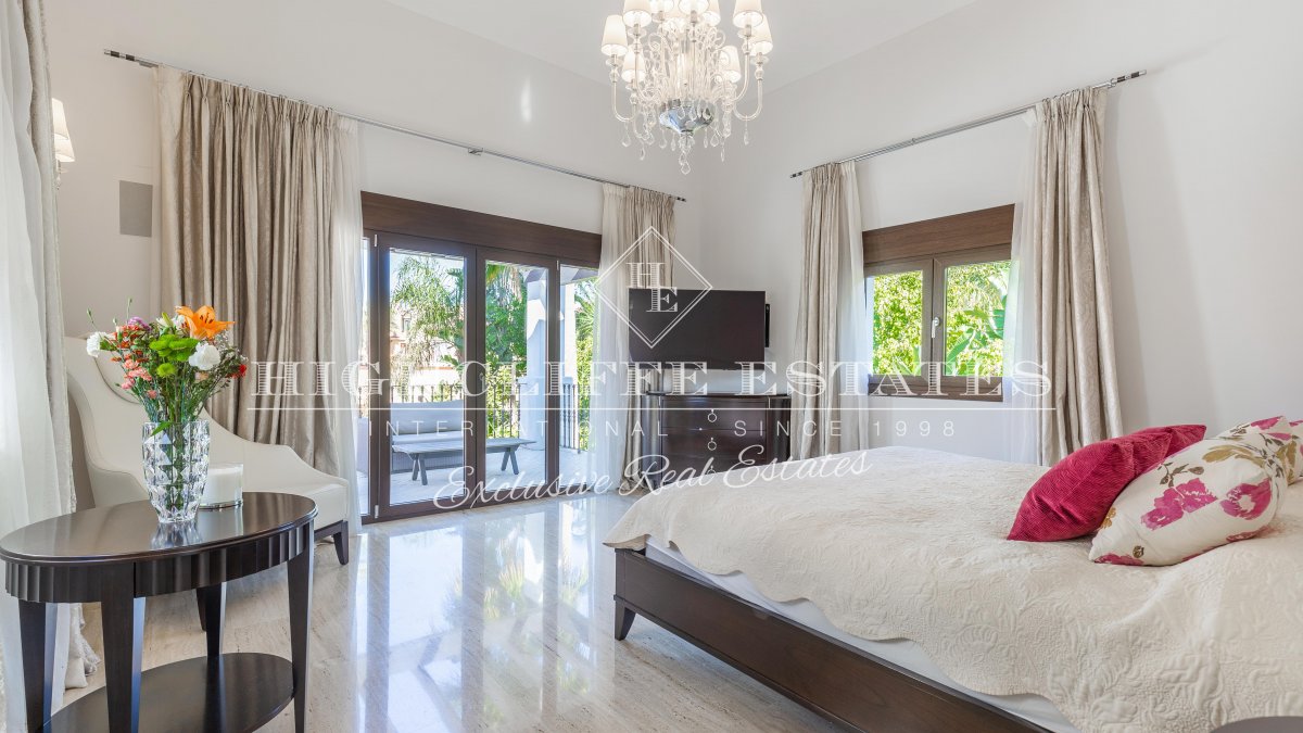 vistas al jardin, vistas a la piscina, servicios cercanos, lado playa, cerca de golf, cerca de playa/mar, parque para niños cercano, cerca del puerto, colegios cerca, tiendas cerca, cerca de la ciudad, transporte cercano, aire acondicionado, excelente estado, riego automático, barbacoa, rejas, sotano, terraza cubierta, armarios empotrados, puertas de cristal, aseo para visita, suelos de marmol, cocina totalmente equipada y sala de cine.