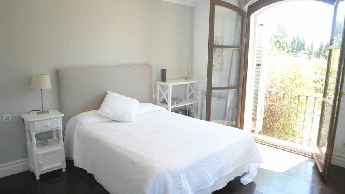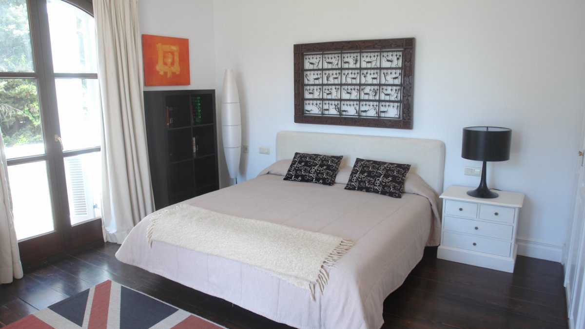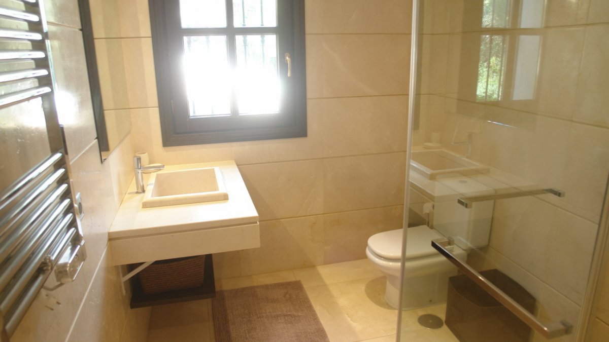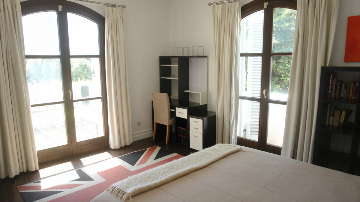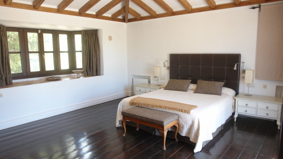 En la 1 planta tiene 3 dormitorios en suite y un baño aparte para la buhardilla que hay subiendo las escaleras de caracol y tiene 2 camas individuales.