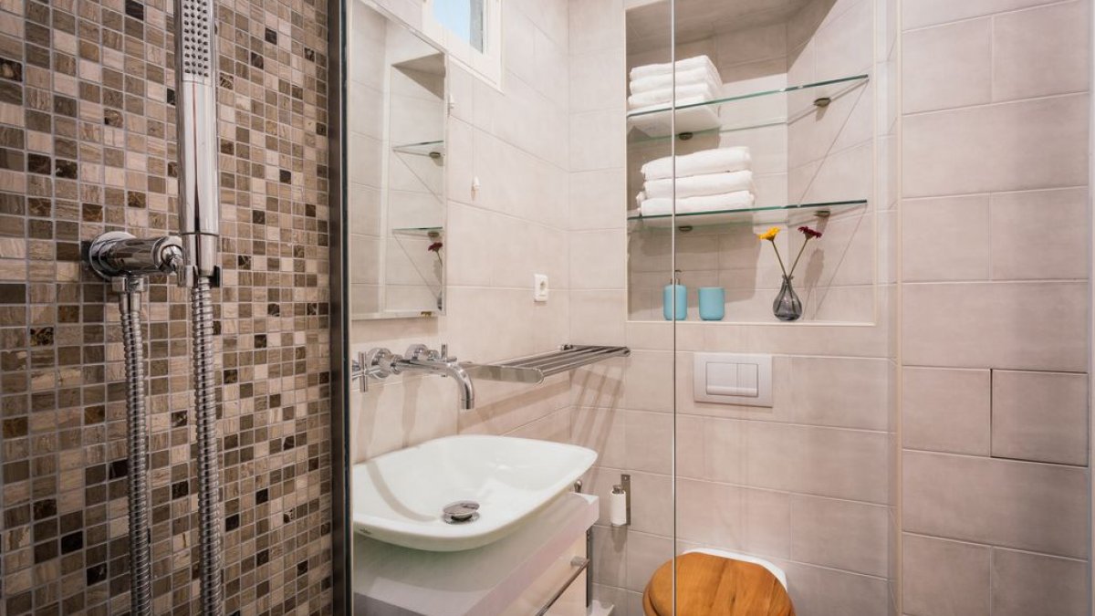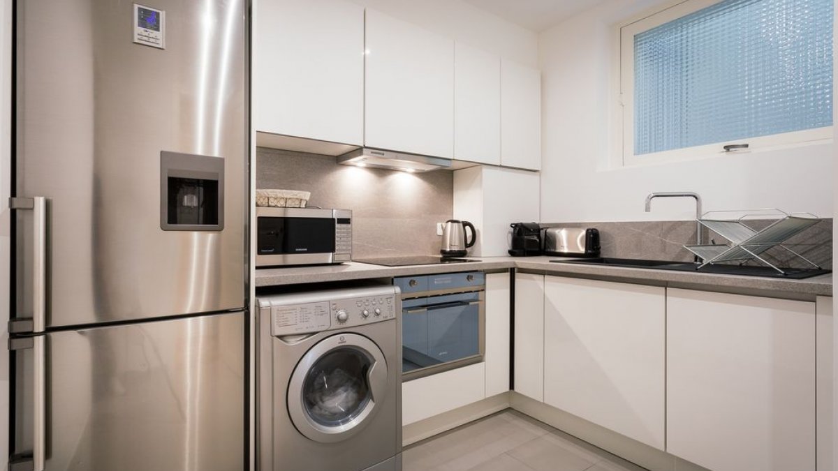 El edificio es muy seguro y tiene ascensor. una renovación completa se completó en abril de 2016. El dormitorio consta de una sala de estar con un sofá para dos personas, un dormitorio con cama king size (180 * 200 cm o 72 * 80 pulgadas), una esquina de escritorio y un gran armario, un baño con bañera / ducha, inodoros, lavabo , una cocina totalmente equipada con lavadora / secadora y una mesa para cuatro. El apartamento viene con teléfono gratuito a 80 países, incluyendo América del Norte y Australia, conexión inalámbrica a internet gratuita, televisión por cable gratuita. La tarifa de alquiler semanal con todo incluido cubre ropa de cama y toallas.