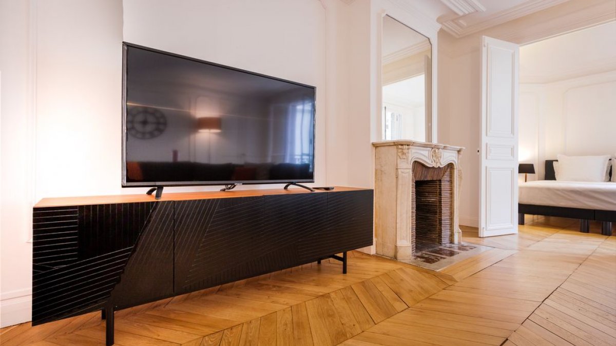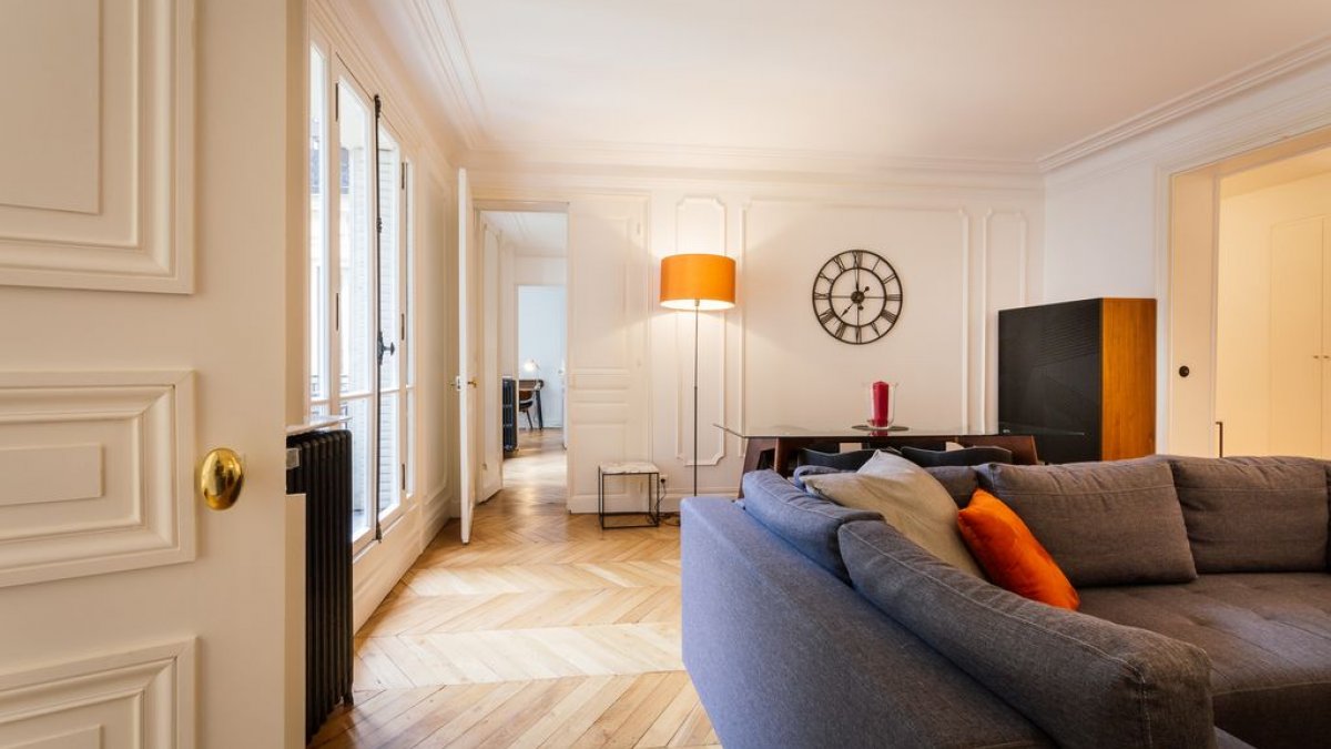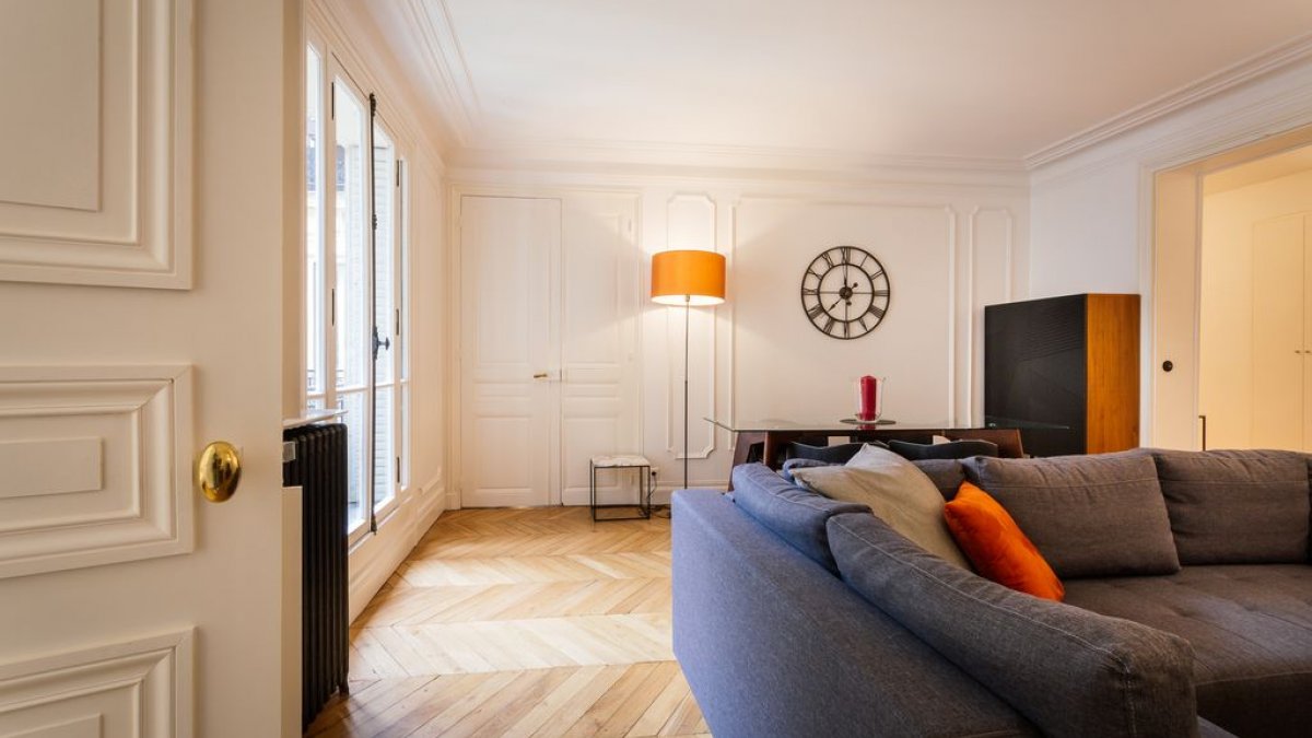 Este apartamento de una habitación totalmente equipado está a una cuadra de los Campos Elíseos, cerca de la estación de metro Franklin Roosevelt. Se encuentra en el primer nivel (segundo estadounidense) de un edificio del siglo XIX con solo vistas al patio y, por lo tanto, es tranquilo.