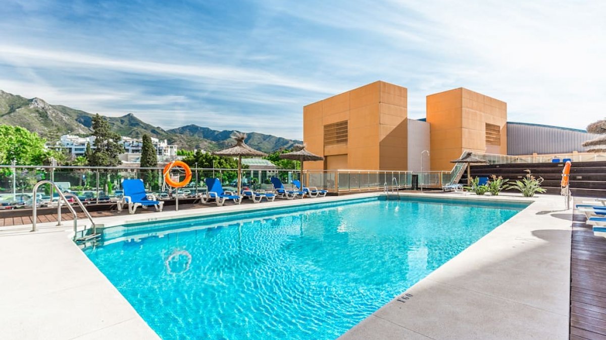 Amplio apartamento de 2 dormitorios y exquisita decoración en el corazón de la Milla de Oro de Marbella a escasos metros de la playa en el conjunto residencial Palacio de Congresos.