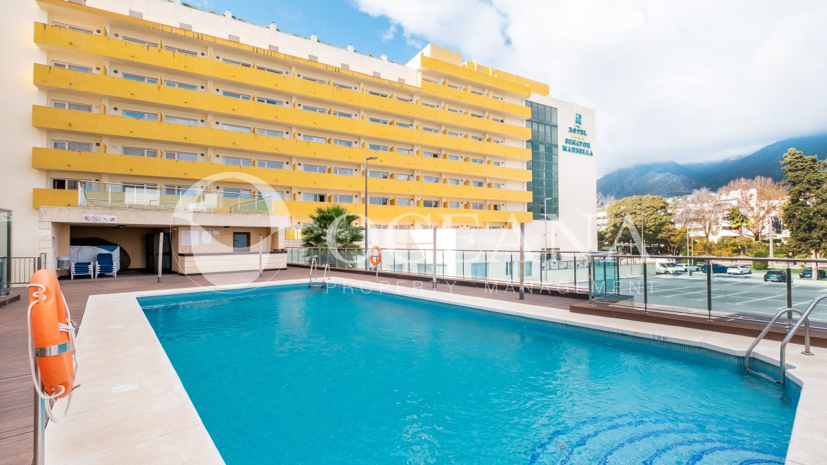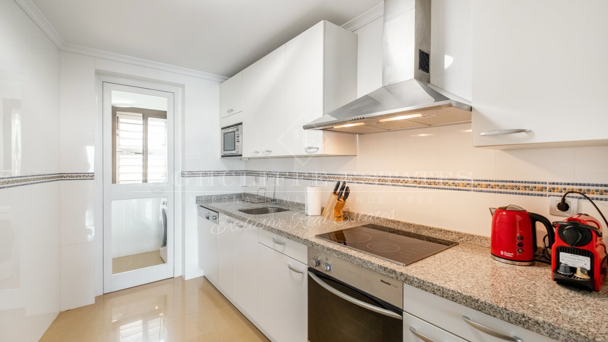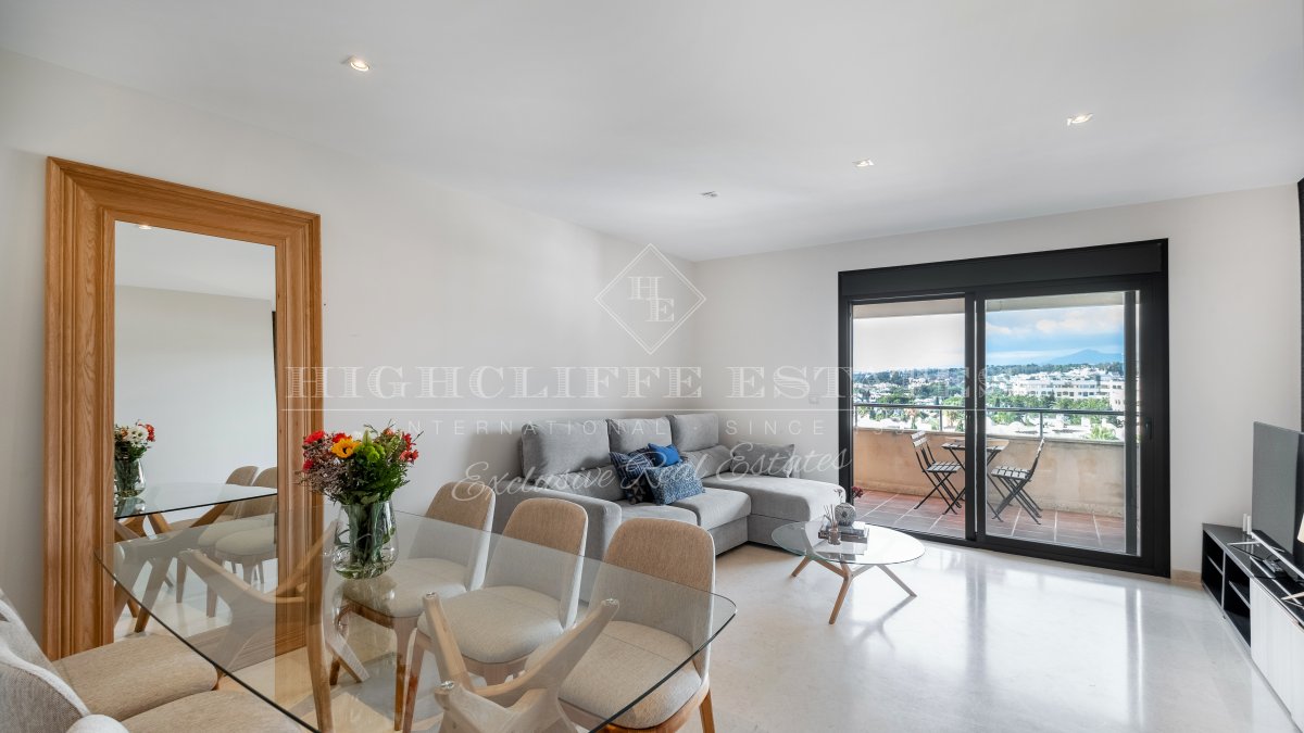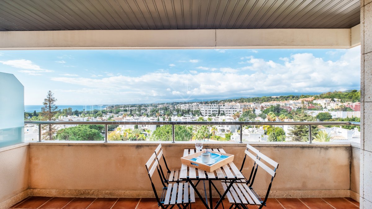 El apartamento consta de 2 dormitorios y 2 baños, amplio salón-comedor, cocina americana equipada, terraza cubierta de aprox.15 m2 con orientación Sur y Oeste y agradables vistas al mar y a Puerto Banus.