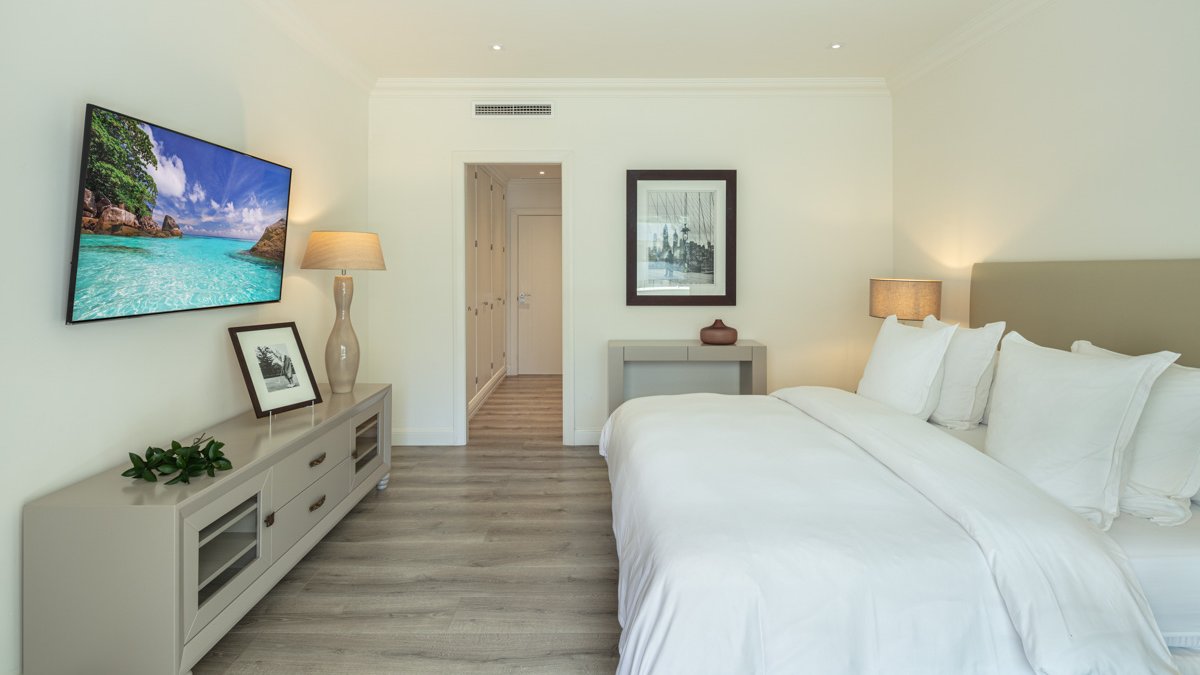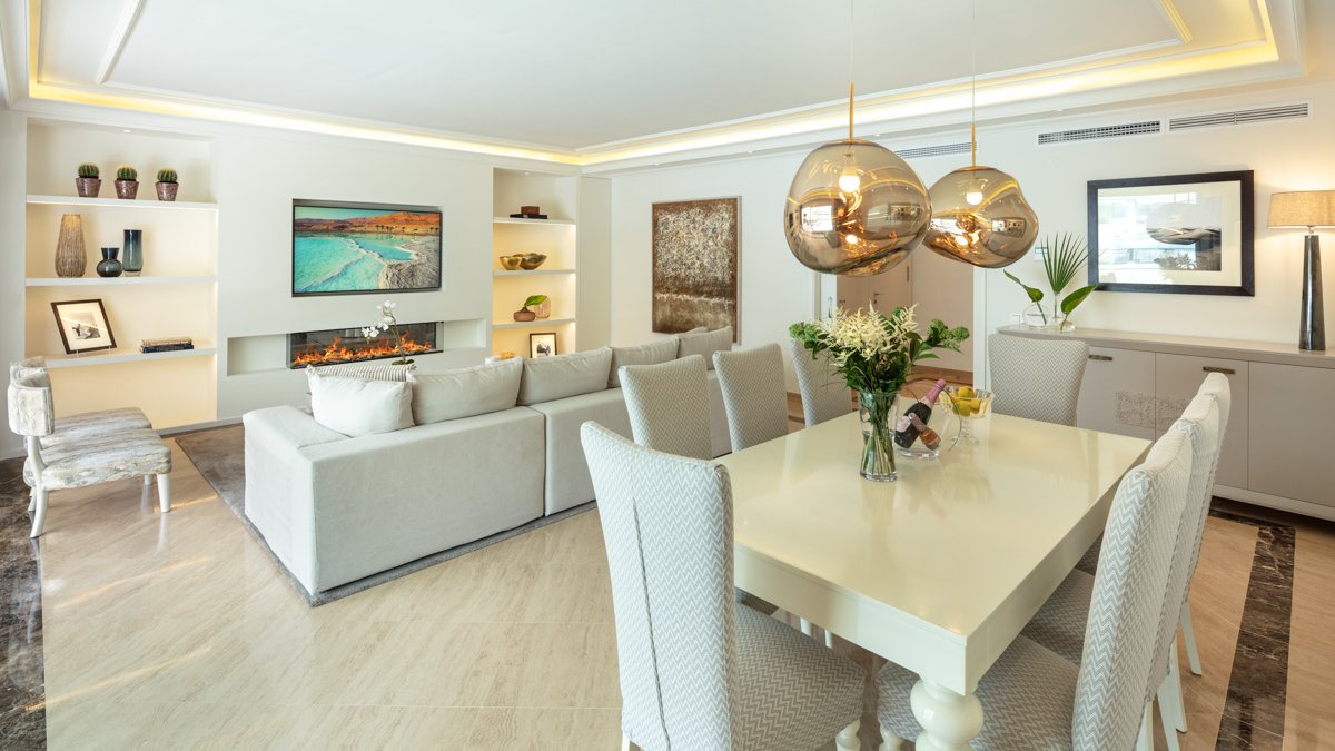 El apartamento tiene una sala de estar de tamaño impresionante con una mesa de comedor y un sofá y una chimenea para relajarse. Hay un acceso directo desde la sala de estar a la enorme terraza también equipada con un juego de comedor, televisor y tumbonas, que le da la bienvenida para cenar y beber vino al aire libre y relajarse después. Hay 4 dormitorios equipados con cama doble cada uno, con capacidad para 8 personas en total lujo, el dormitorio principal tiene vestidor en suite y salida a la terraza. Hay 3 baños y 1 aseo de invitados, acogedora cocina totalmente equipada donde encontrará todos los electrodomésticos necesarios y otro juego de comedor si prefiere desayunar en la intimidad.