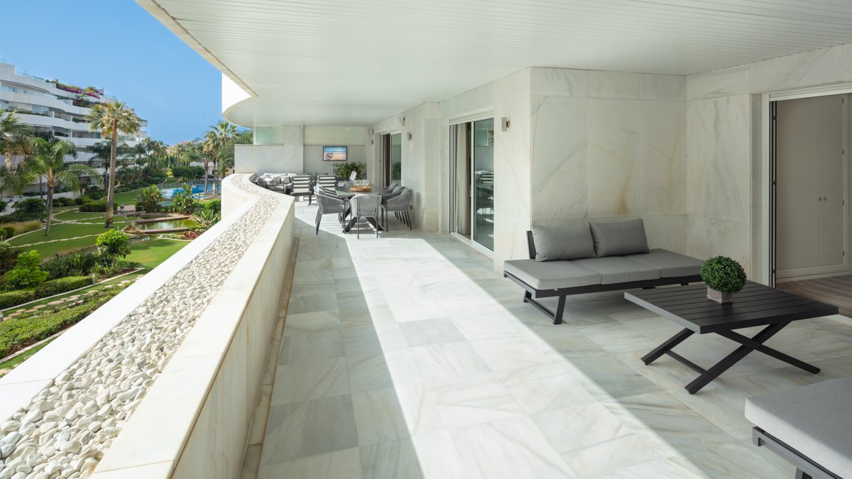 Este espacioso apartamento de 191 m2 absolutamente hermoso y decorado con buen gusto con una gran terraza de 90 m2 se encuentra en una de las urbanizaciones cerradas más prestigiosas y seguras las 24 horas del día, los 7 días de la semana de la Costa del Sol: El Embrujo de Banús, Puerto Banús. El complejo ofrece jardines tropicales maduros con gran zona verde y 2 piscinas, una de ellas cubierta, servicio de conserjería, complejo de spa con gimnasio, sauna, jacuzzi y baño turco. Todo es de la más alta calidad, equipado con un equipo moderno y bien mantenido. Privacidad total y muchas comodidades útiles junto con materiales de alta calidad hacen que este complejo destaque entre la multitud de lugares lujosos de Marbella, Puerto Banús.