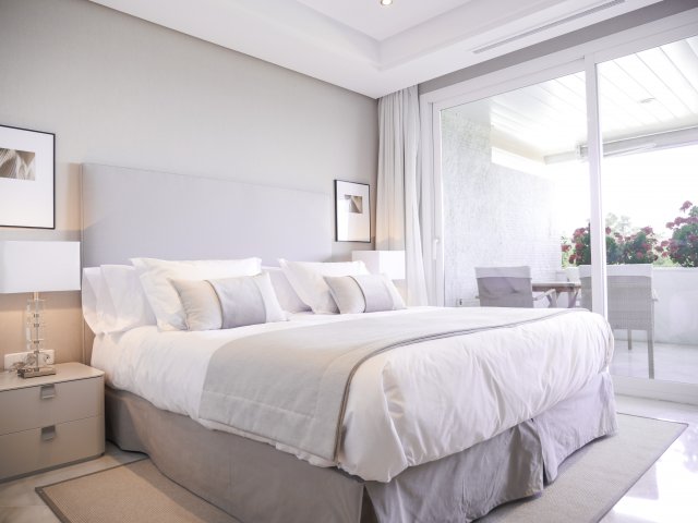 El nivel superior ofrece dos dormitorios más, uno de ellos es el dormitorio principal, que tiene suelos de madera, terraza privada, vestidor y baño para ella y para él.