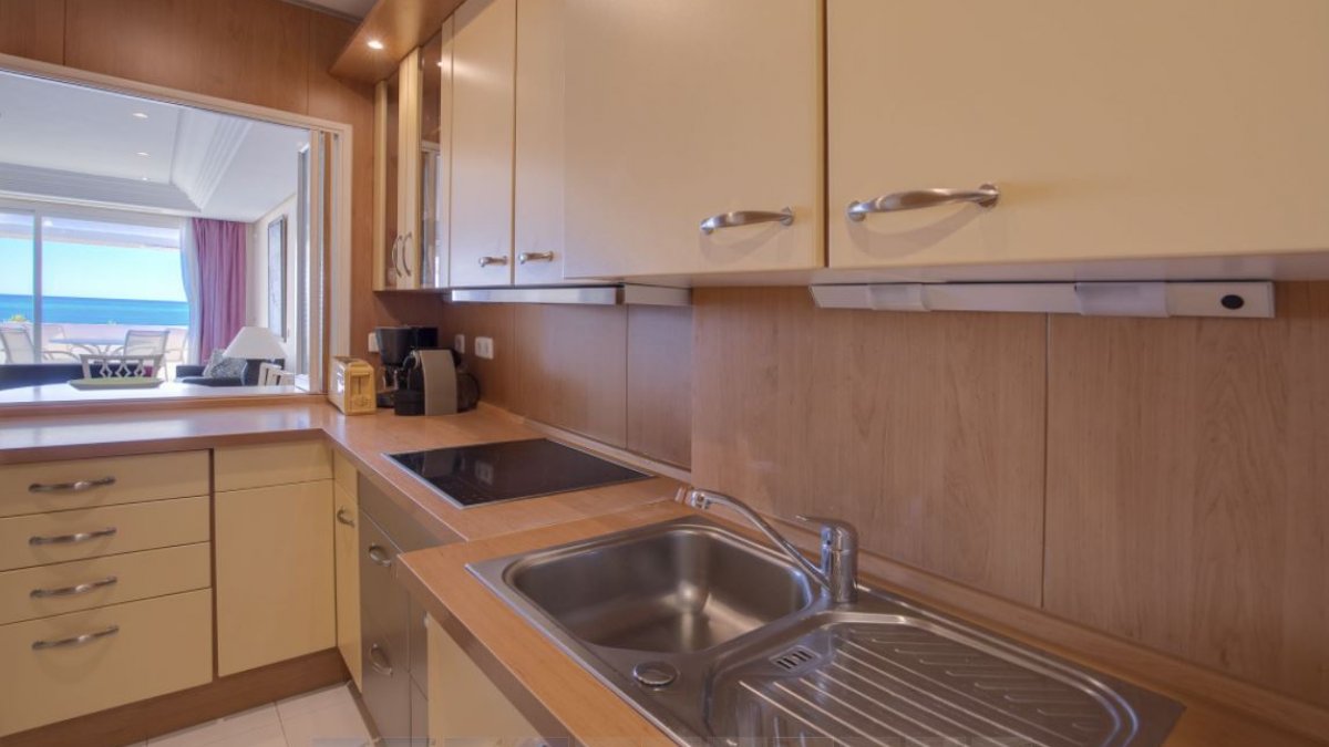 Consta de vestíbulo, cocina totalmente equipada, salón comedor con salida a la terraza, dos dormitorios con dos baños, el dormitorio principal tiene el baño en-suite y salida a la terraza.