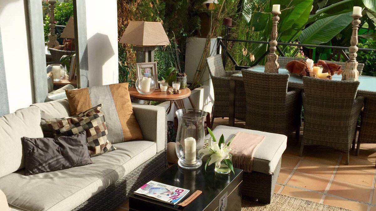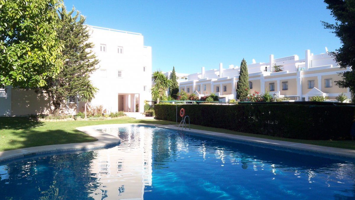 Townhouse . 3 bedrooms with 3 bathrooms en suite, possibility for one more . 2 lounges 270 m2 built Porch 30 m2 . Garden 50 m2 . Terrace 12 m2 . Kitchen, laundry and ironing . Private garage. Security 24h . Electric shutters. Wifi . Alarm . 2 swimming pools. Parking space included in the price. Second hand / good condition . Built-in wardrobes. Air conditioner .
