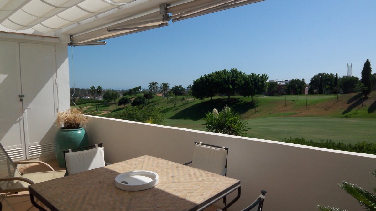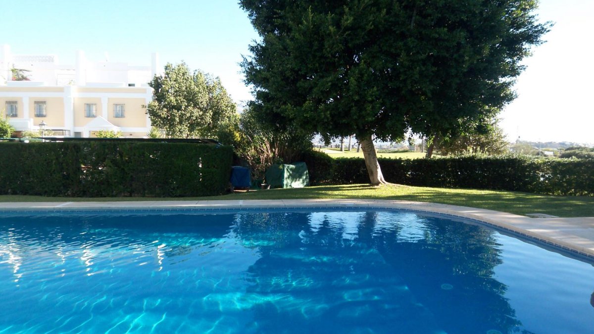 Beautiful luxury townhouse with fantastic views of the golf course and in a very nice environment with lots of greenery and very quiet . Its location makes this the perfect place to live and enjoy this sport site. It consists of a large living room with access to the porch , kitchen, fully equipped kitchen and three bedrooms en suite. It also has electric shutters and awnings. a storage room and parking area. well-kept urbanization with swimming pools and gardens. With the possibility of free access to several golf courses. "