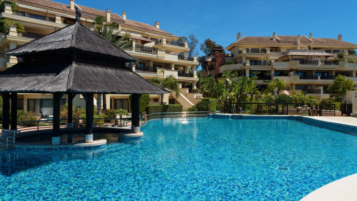 Laguna de Banus is a gated complex with 24h security, 2 pools, sauna, turkish bath, gym, interior 2 parking spaces, and walking distance to the beach and Puerto Banus.
