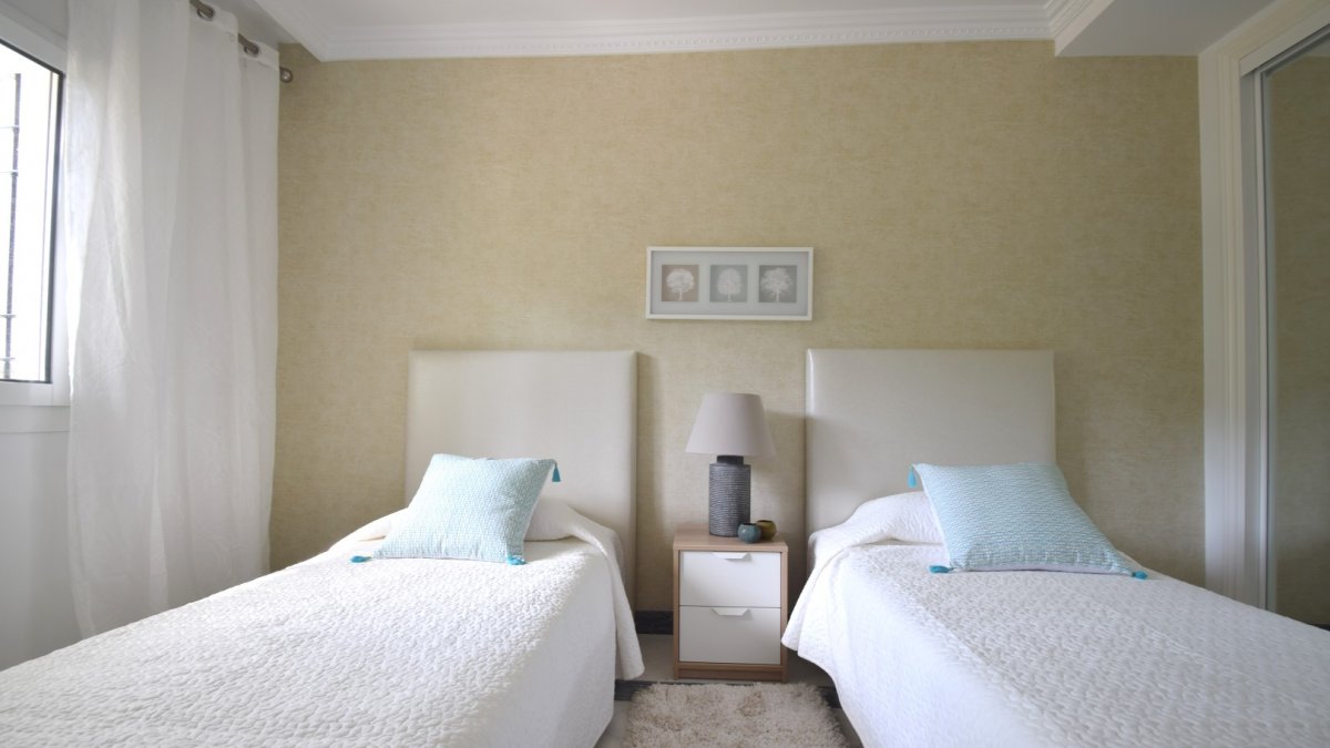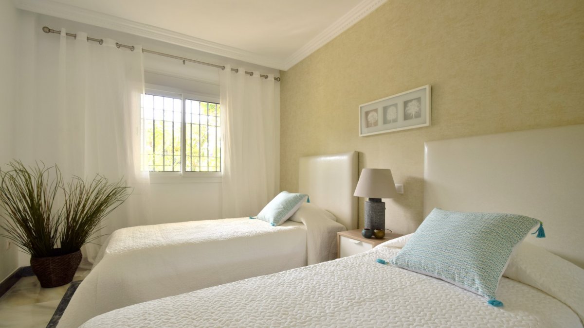 Located in the golf valley close to the beautiful Lake Las Tortugas, it is Señorío de Gonzaga, a fully gated community consisting of three phases, each with its own pool area. The buildings are built in a traditional Andalusian style, only two floors and the entrance to the upper floor is on the outside, thus creating a more private setting, as each apartment has its own private staircase. Gardens with several trails and pool area with umbrellas and chairs and bathrooms with showers. The complex is located in a quiet area with mountains in the back and a short walk leads to Lake Las Tortugas, which is a nice place to walk or jog place, also has a play area for children. A few minutes from restaurants, cafes and shops of Aloha. You can also find the beach and Puerto Banus only 5 minutes.