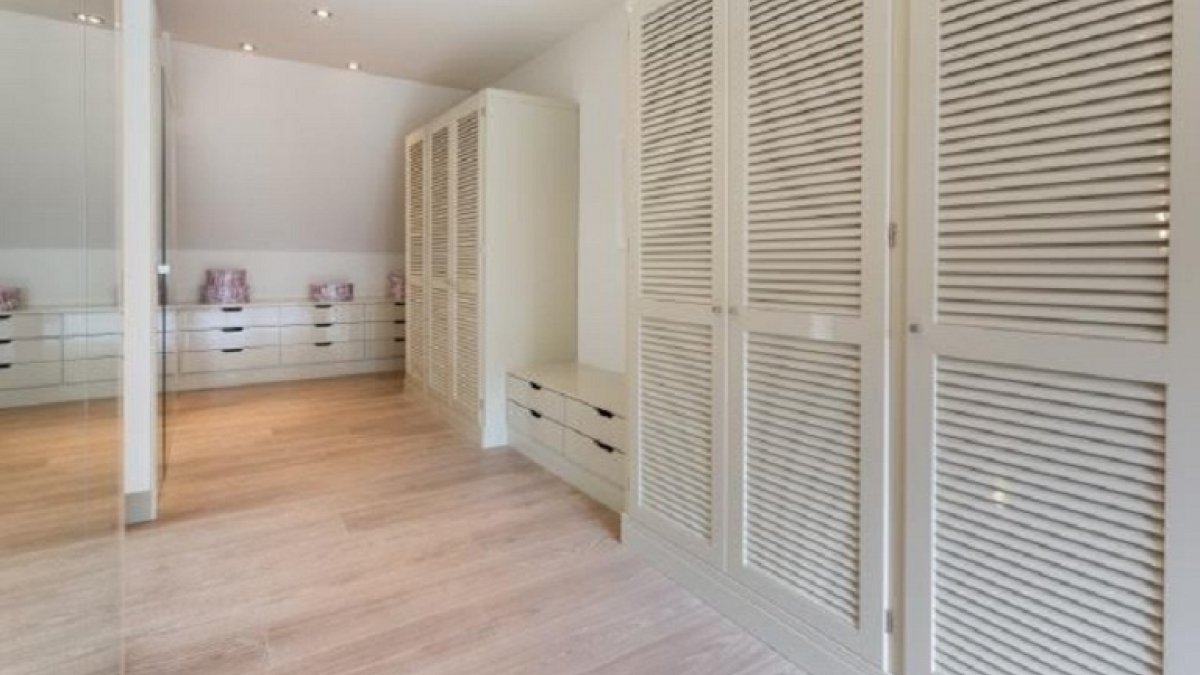 Entrance hall, five bedrooms with en suite bathrooms, guest toilet, distribution hall, lounge, dining room, living room, kitchen, porch, all of them large. 4 car garage.