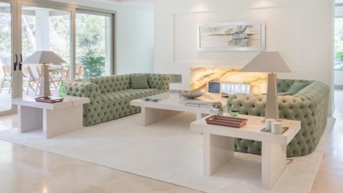 - Fireplace in living room and dining room onyx - Built completely coated and lacquered drawers.