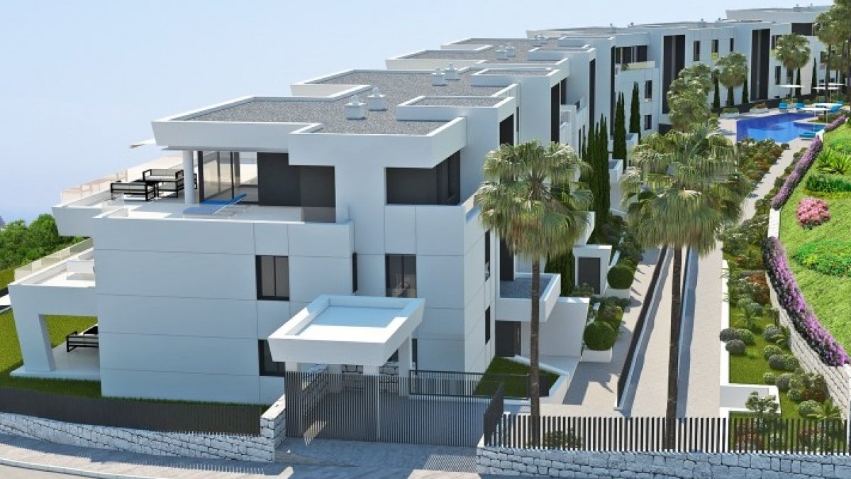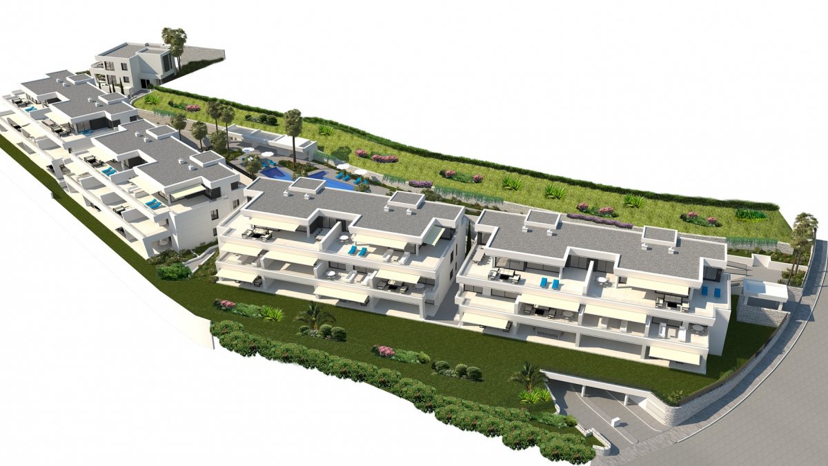 "AZAHAR MARBELLA" is a development consisting of 42 homes of great design, strategically located in the best and most exclusive enclave of Nueva Andalucia. This development consists of 5 buildings facing south on an exceptional plot which, due to its design and modern construction with large terraces, allows homes have spectacular views towards the Mediterranean Sea and the golf courses. The apartments, of 2 and 3 bedrooms offer open space from the entrance to the terraces, with large windows which make the most of the Mediterranean light. Functionality and design are balanced offering large rooms with kitchens and built-in kitchens where harmony stays bet for a family style in common. Using art materials, complying with all regulations, and a design in line with new decorating trends, marked by straight lines where white combines with harmonious light colors to create comfortable rooms full of light. The complex will be equipped with a pool with a large solarium and minimalist gardens as well as a spa area with sauna, Turkish bath, jacuzzi and gym.