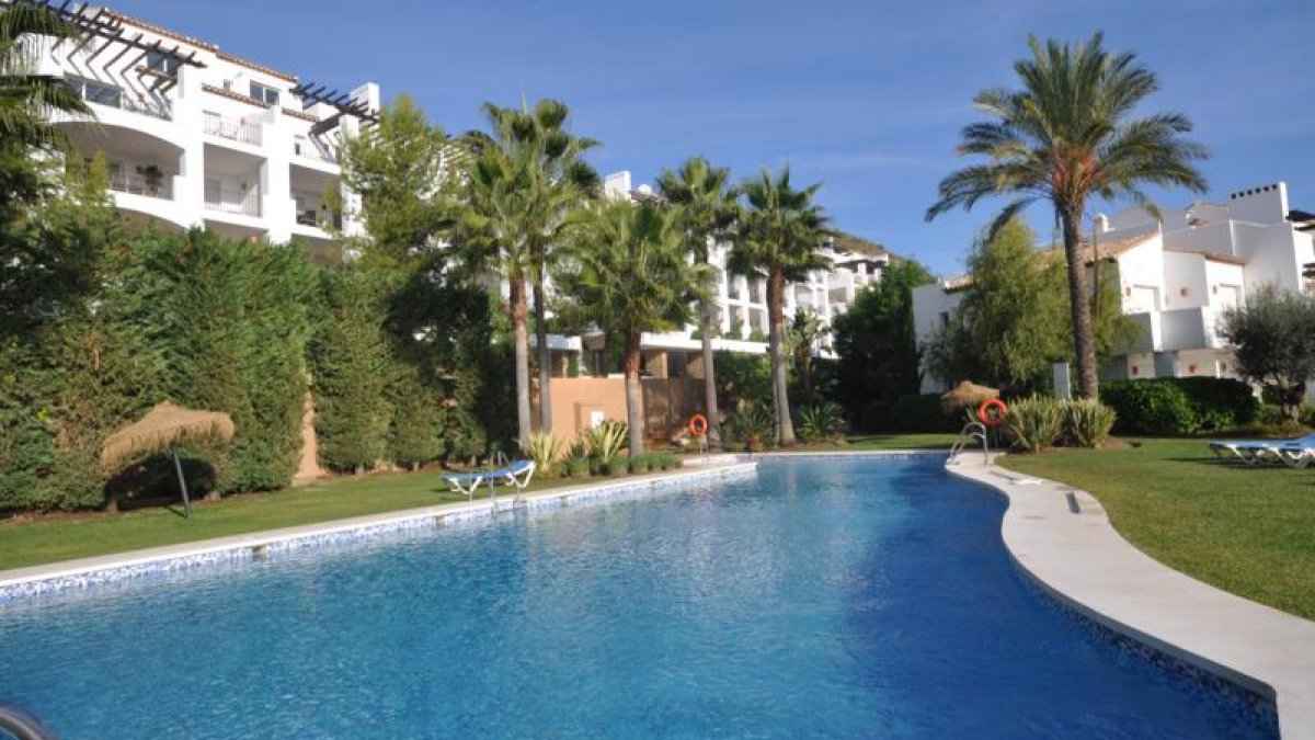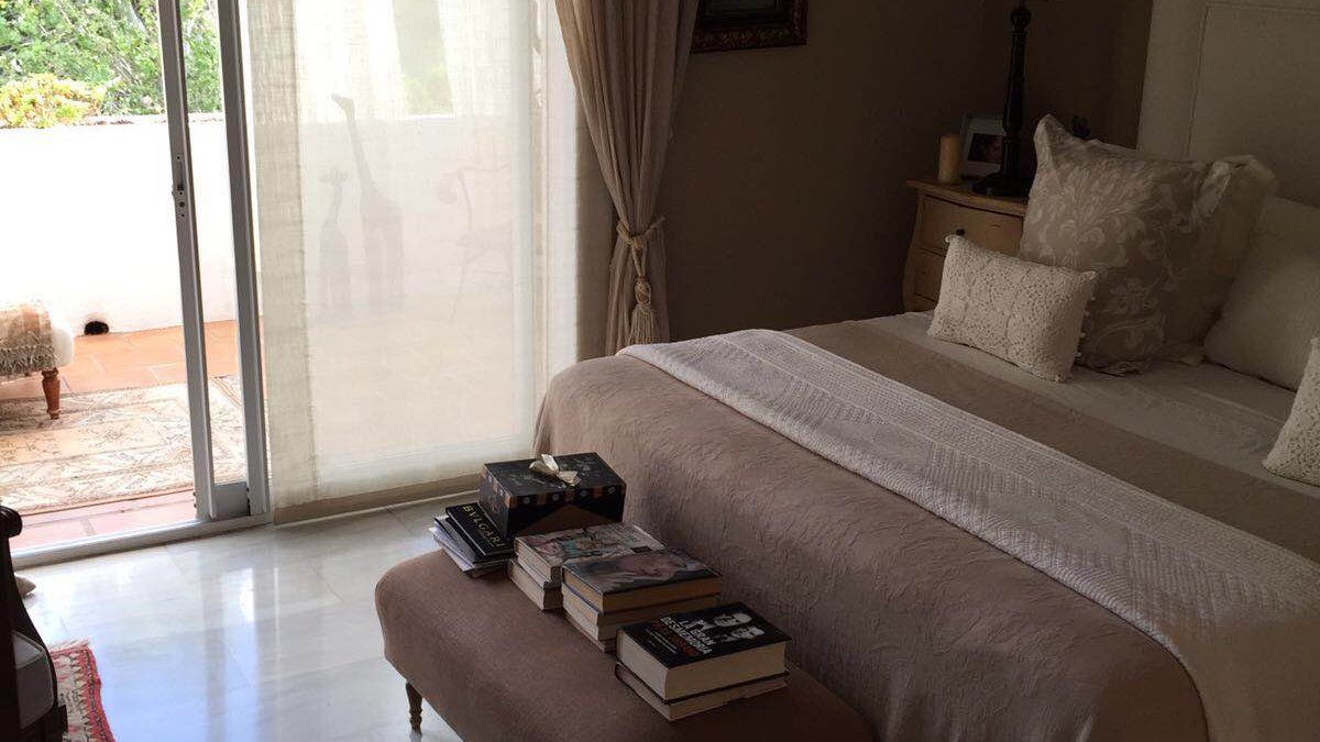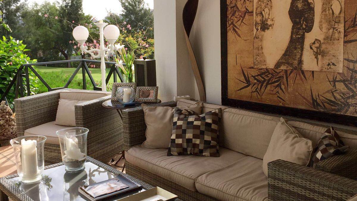 Beautiful luxury townhouse with fantastic views of the golf course and in a very nice environment with lots of greenery and very quiet . Its location makes this the perfect place to live and enjoy this sport site. It consists of a large living room with access to the porch , kitchen, fully equipped kitchen and three bedrooms en suite. It also has electric shutters and awnings. a storage room and parking area. well-kept urbanization with swimming pools and gardens. With the possibility of free access to several golf courses. "