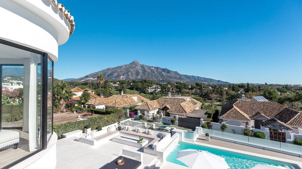 Absolutely stunning four bedroom villa for sale in the prestigious Golf Valley; set in a fantastic location, just a short drive to all amenities including local schools, golf courses and the famous harbour of Puerto Banús. With a delectable contemporary design, the property has been specifically designed to create a modern haven of luxury. Two delicate waterfalls and an intricate use of lighting invite you into the villa. Bright and spacious, the living area is all open- plan with a beautiful white contemporary kitchen. Sliding doors around the living and dining room open fully to enable the sensation of intertwining the outdoor and indoor living spaces. The right wing of the ground floor comprises three large bedrooms, all of which offer direct access out to the terrace and garden. On the first floor you will find a master suite that will simply take your breath away; light and spacious with a gorgeous bathroom, it features an open gas fireplace, a dressing room and a relaxing viewpoint area looking out to the mountains. There is also access out to a private terrace with an outdoor shower and fabulous views spanning the local fairways, mountains and the dazzling Mediterranean coastline. Designed with an attractive staggering effect, the terrace and pool area is split over two levels. A raised sitting area, which provides striking views of La Concha, overlooks the pool with an alluring waterfall feature connecting the two; the mesmerising sound of the flowing water provides the perfect accompaniment to the exquisite surroundings as you relax and soak up the Spanish sun. An exquisite property situated in a highly sought-after area; a must-see in order to truly appreciate the intrinsic beauty of the villa