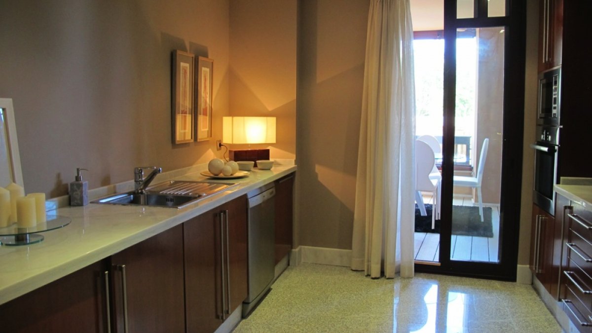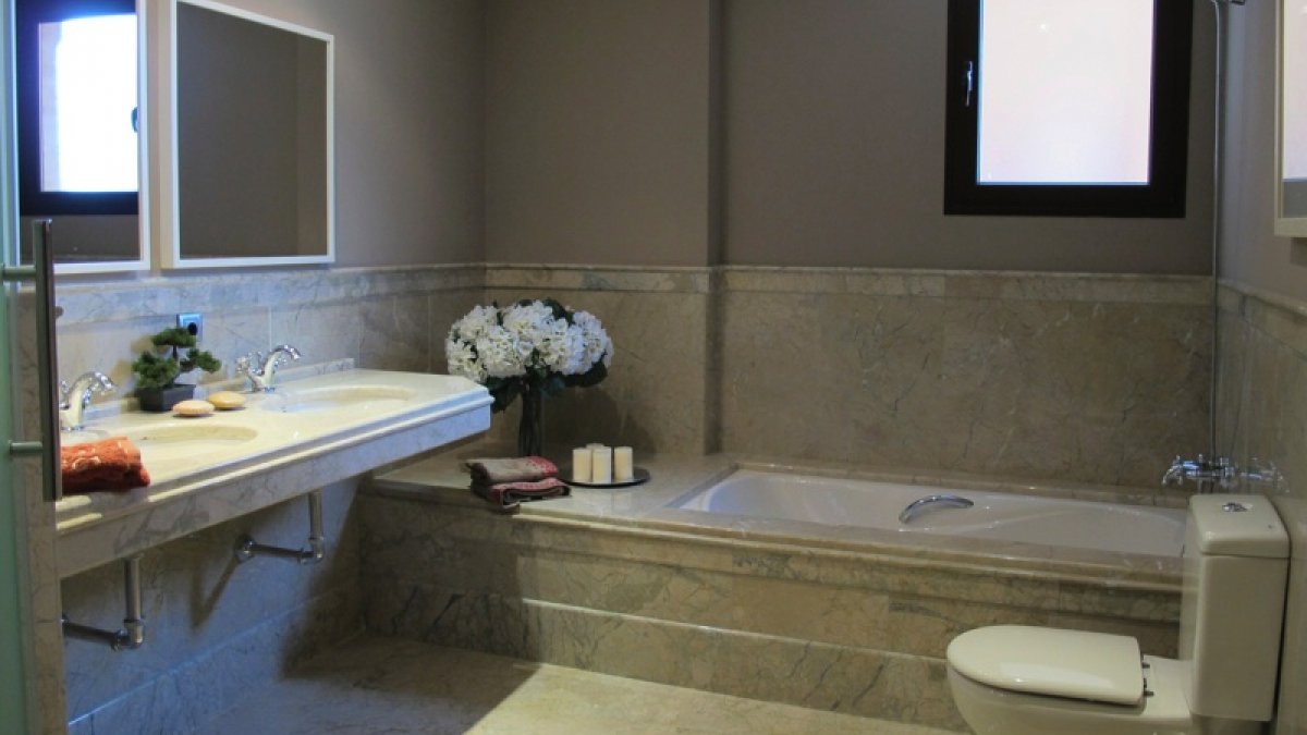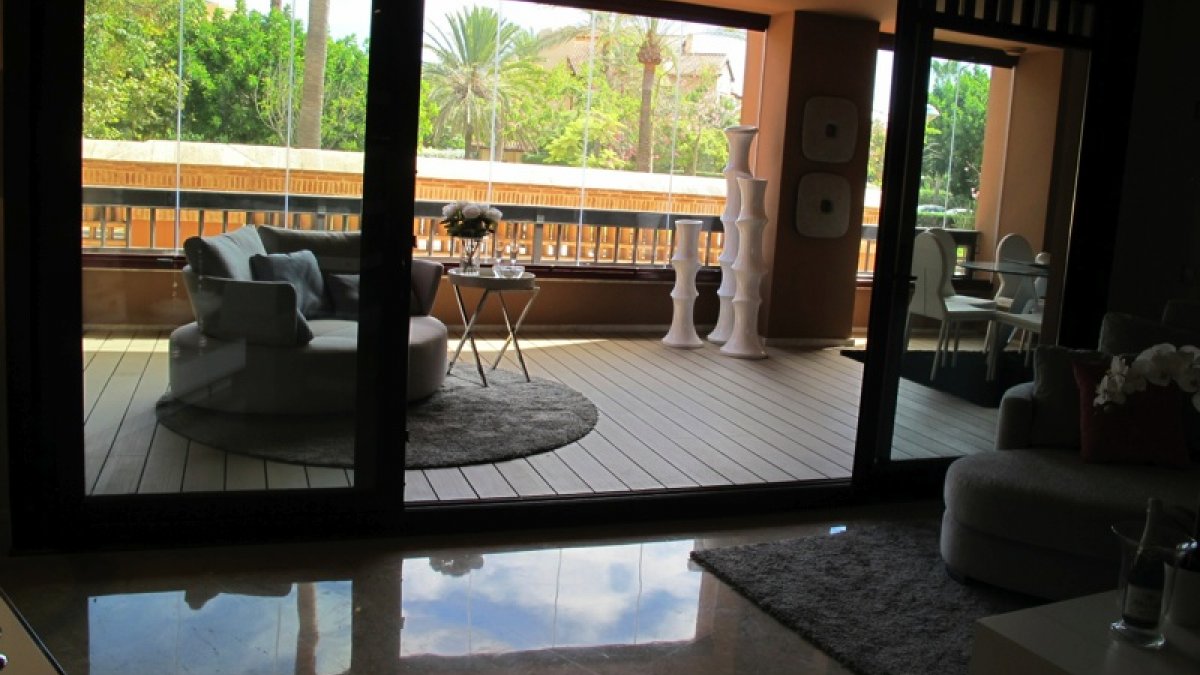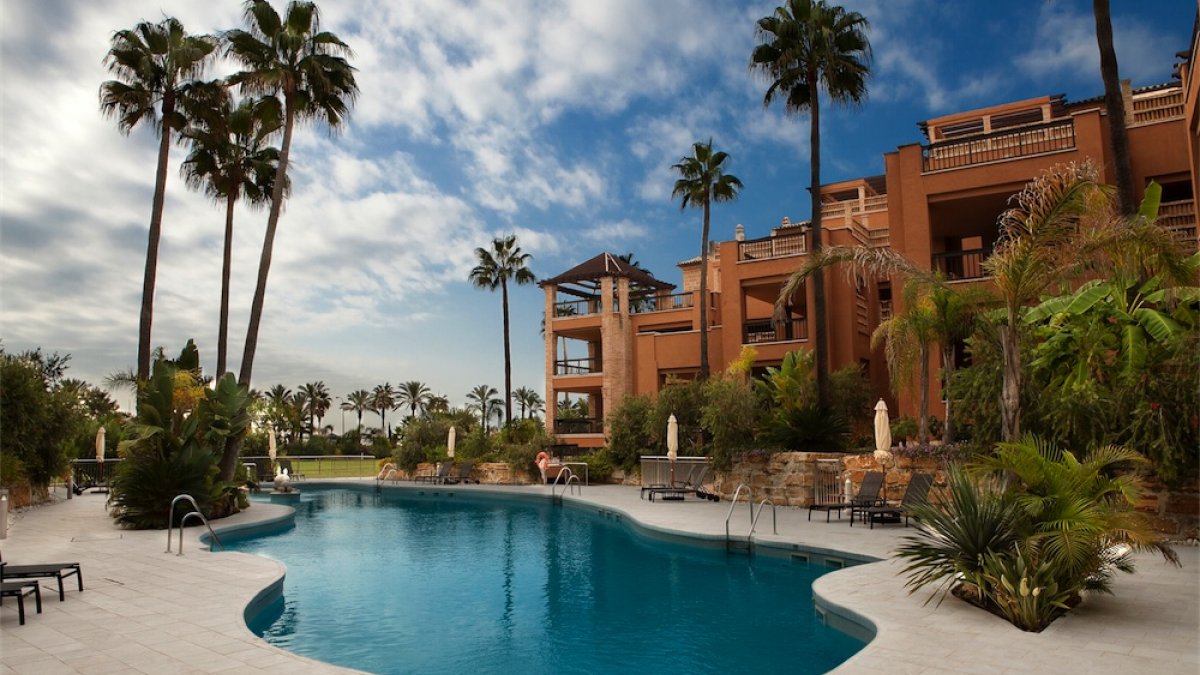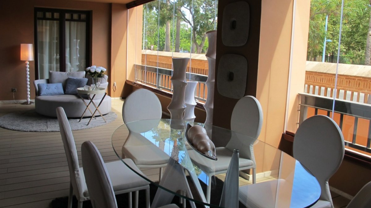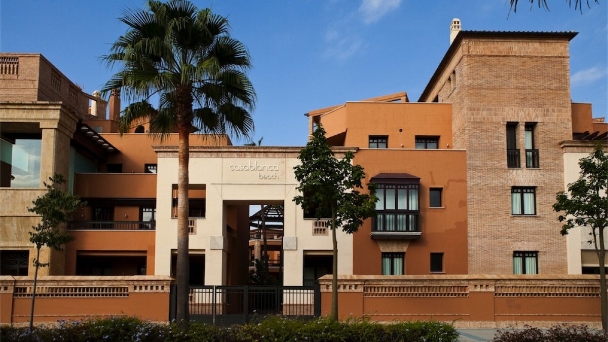 This apartment is located in the Casablanca Beach complex, right on the beach, in San Pedro de Alcántara, Marbella. It is a ground floor with 3 bedrooms and 2 bathrooms. It has a cozy covered terrace with wooden floors. Luxury qualities: marble floors, air conditioning cold heat. On one floor has a living room, fitted and equipped kitchen, covered terrace, 3 bedrooms, 2 bathrooms. Garage for two cars and storage room. Sold furnished and furnished. The complex of Casablanca Beach has a privileged location: on the beach front, next to a beautiful promenade full of typical fish restaurants and wide beaches. 15 minutes walk to the center of San Pedro de Alcántara and 30 minutes to the luxurious Puerto Banús. It enjoys the tranquility of the sea and is a step away from all the necessary infrastructures for daily life such as shops, banks, restaurants, sports center, etc. With an original architecture, in three heights, the complex has 61 apartments in total. In its construction have been used materials of first quality, marble, natural stone, wood. The communal areas enjoy a beautiful lake-shaped pool with 6000 m2 of tropical garden, with direct access to the promenade and the beach.