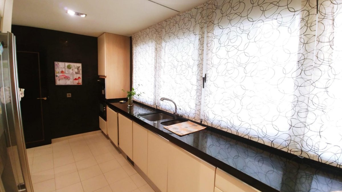 Very spacious dining room, fully renovated kitchen, large terrace with sea view and Southeast orientation.