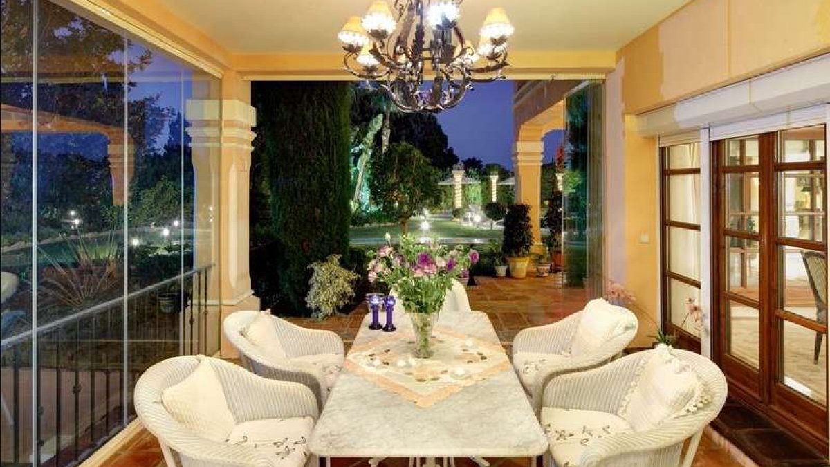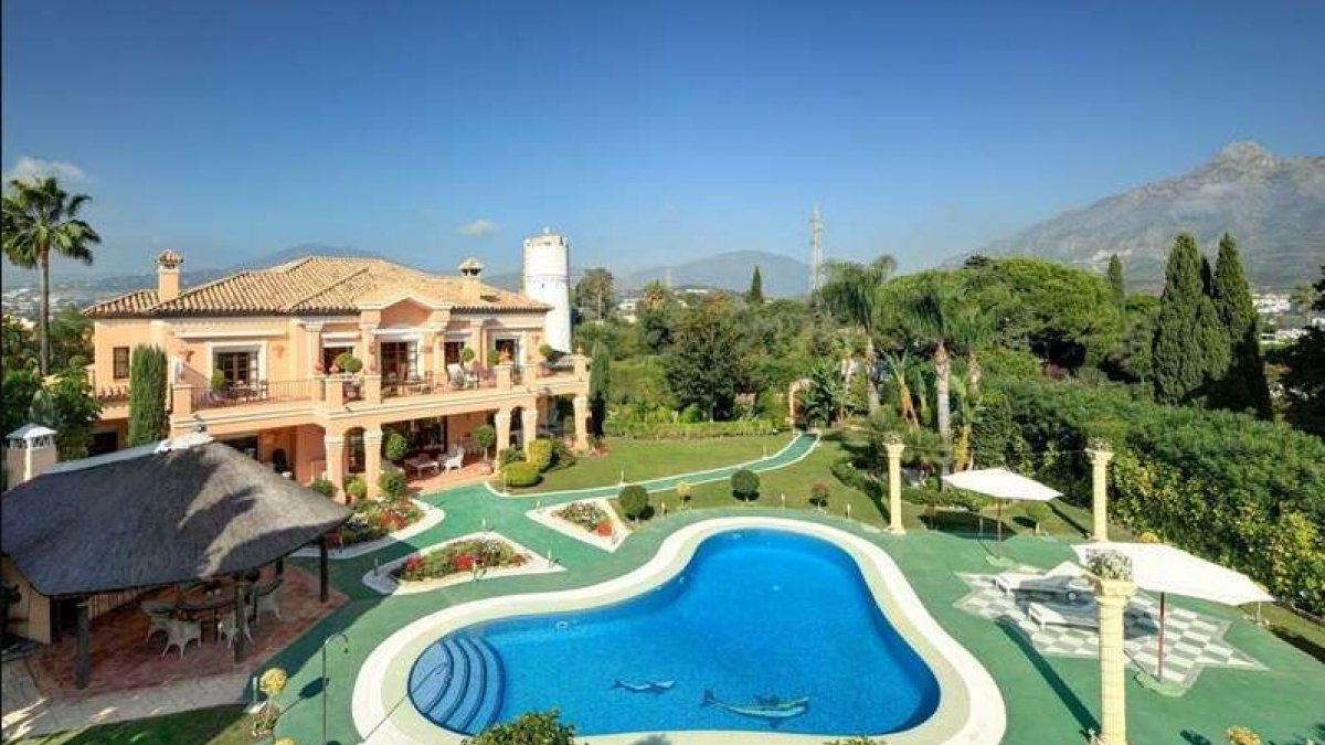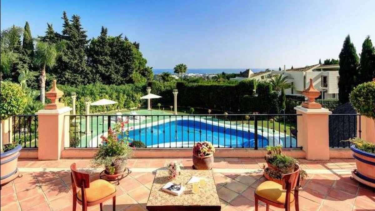 A warm, wonderful and very private mansion with sea views, within easy walking distance of Puerto Banús. This family home is surrounded by a beautiful large mature garden with several water features, ideal for elegant day or night-time entertaining. The property boasts modern features with a touch of old world sophistication. A beautiful entrance garden path surrounded by flowers, plants and a large Italian fountain takes you to the entrance door of this beautiful and very special home. The ground floor features beautiful entrance hallway; living room with adjacent TV room; en-suite guest bedroom with private garden terrace; a large Italian kitchen; indoor or outdoor formal dining areas; guest toilet; large freeform pool; garden bar with its own outdoor kitchen and BBQ. Upstairs: large en-suite master bedroom with walk-in wardrobe; two further en-suite guest bedrooms, one of them currently used as an office. All upstairs bedrooms share access to a large terrace with good sea views. Lower level: staff quarters with kitchenette; living room and bedroom; spa and gym with sauna and large Jacuzzi with an adjacent TV and lounge area with access to the garden. 3-car garage with further outdoor parking spaces. A truly magnificent and unique home in one of Marbella's most desirable neighbourhoods.