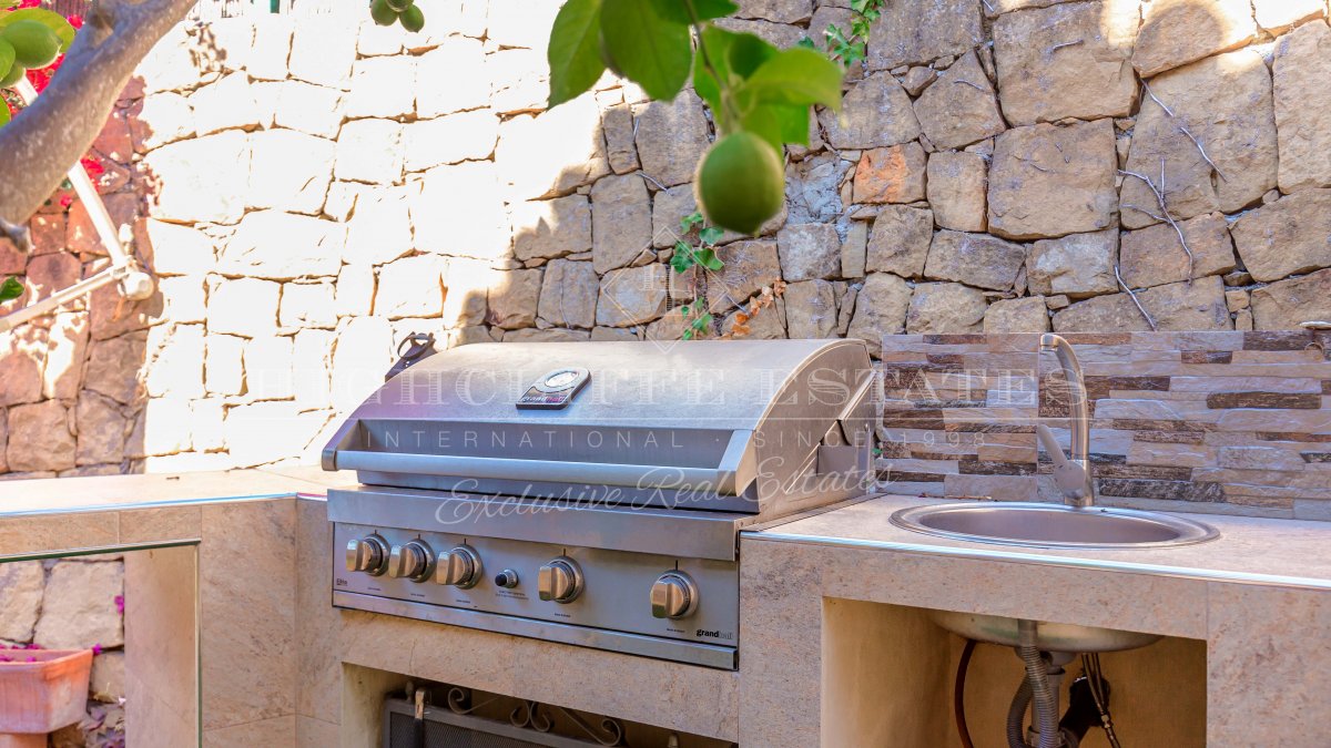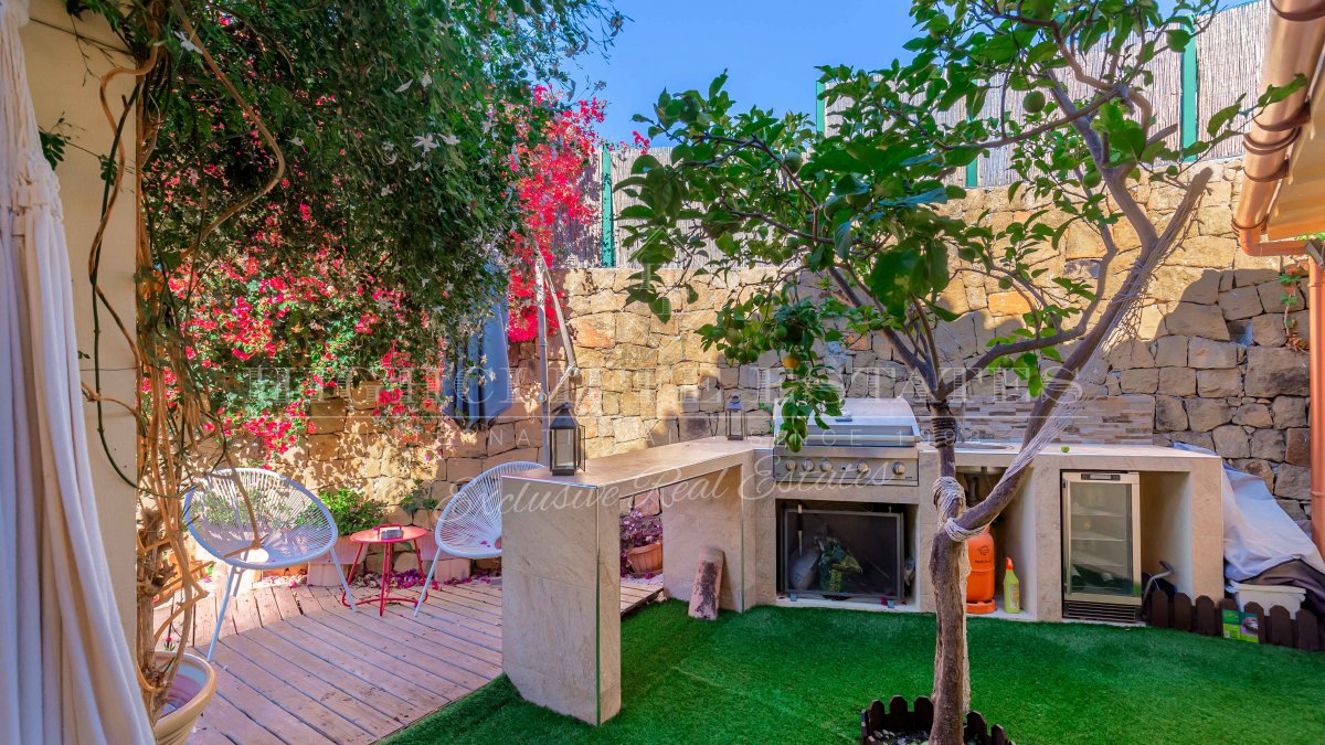 On the main level, entrance with toilet and kitchen open to the living room with access to the private garden of 50 m2, with barbecue and a small office.
