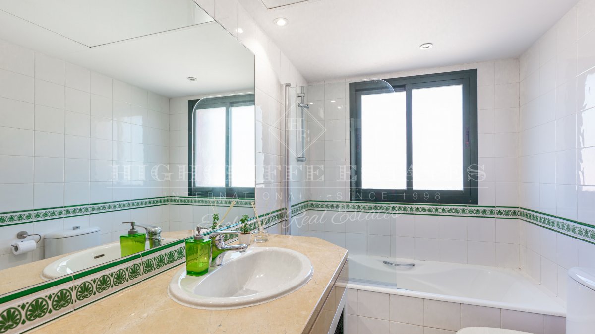 On the first floor is the master bedroom with en suite bathroom and a west-facing terrace. Also, here are two bedrooms that share a full bathroom.