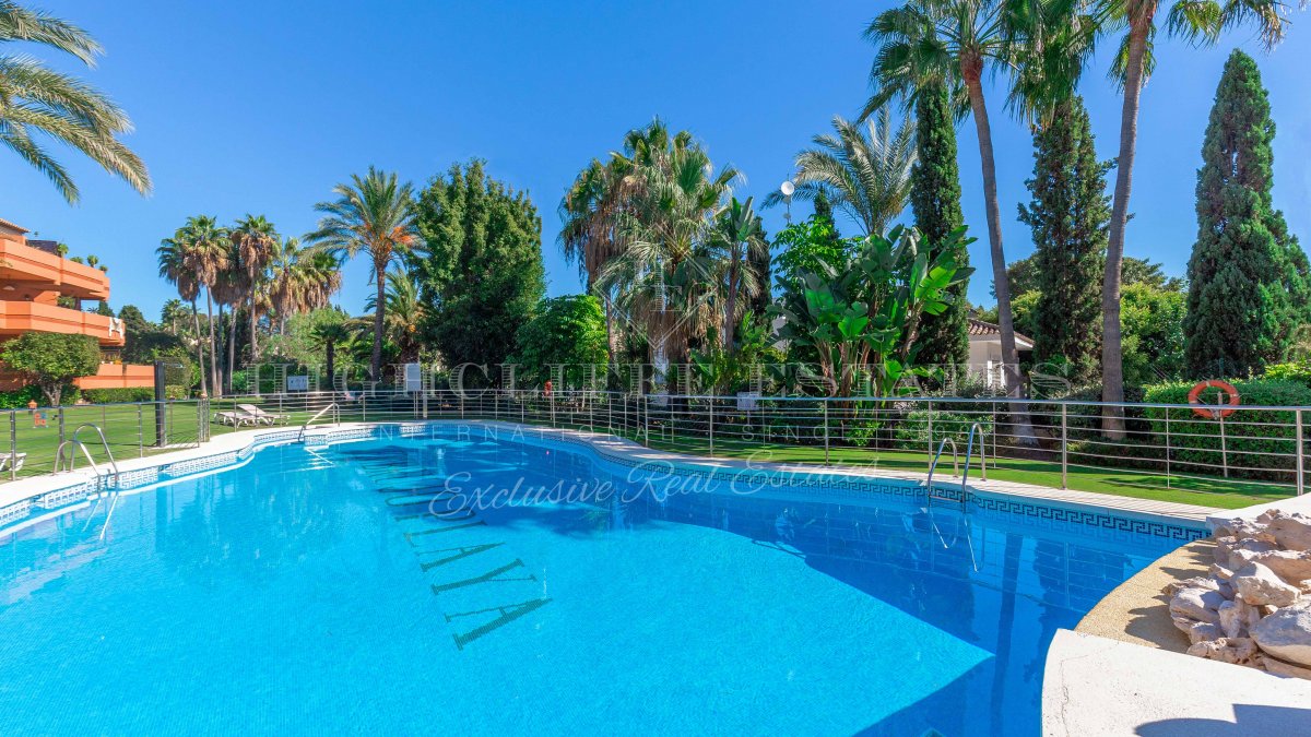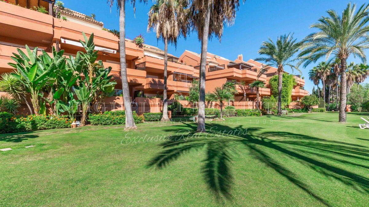 This light garden apartment is composed of two double bedrooms and two bathrooms, a large entrance hall, a fully fitted kitchen with a separate utility room and a spacious lounge/dining area that opens up onto the large terrace, which has direct access to the beautiful tropical gardens and pool.