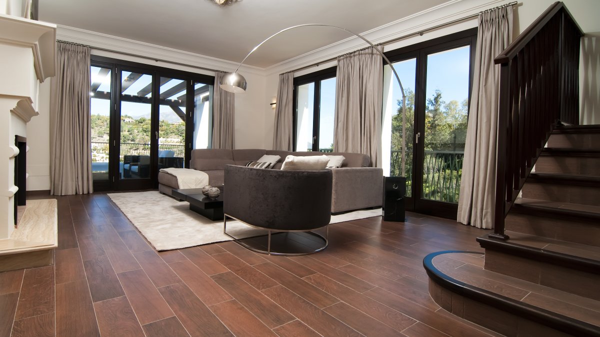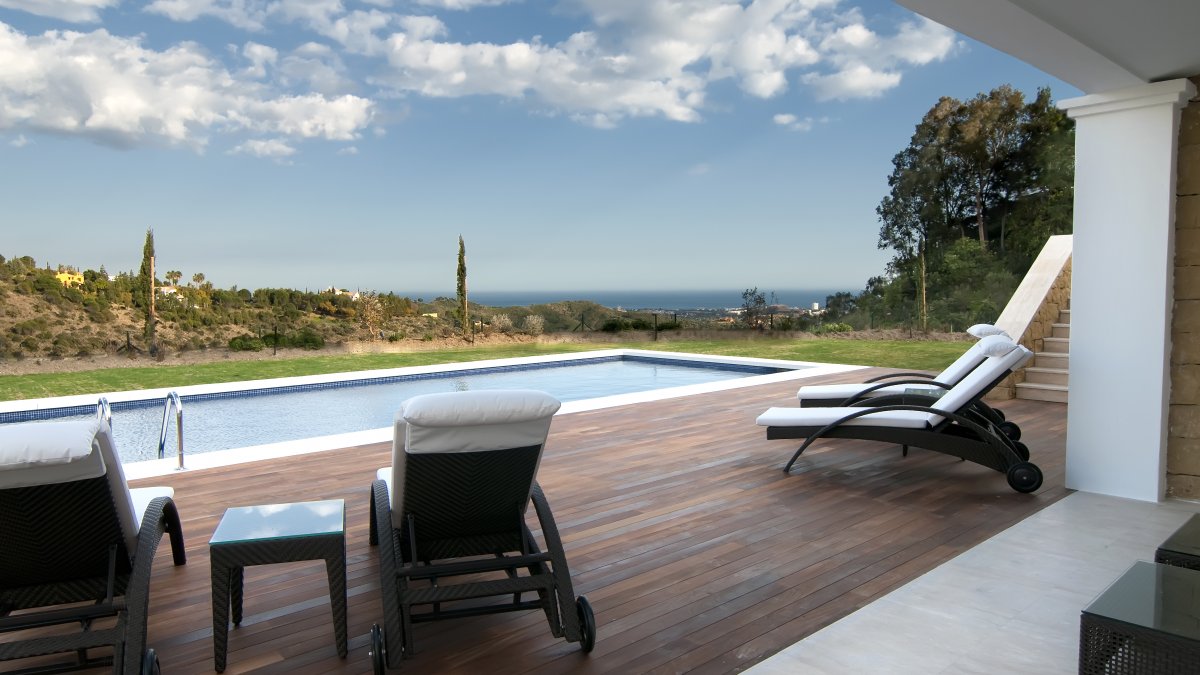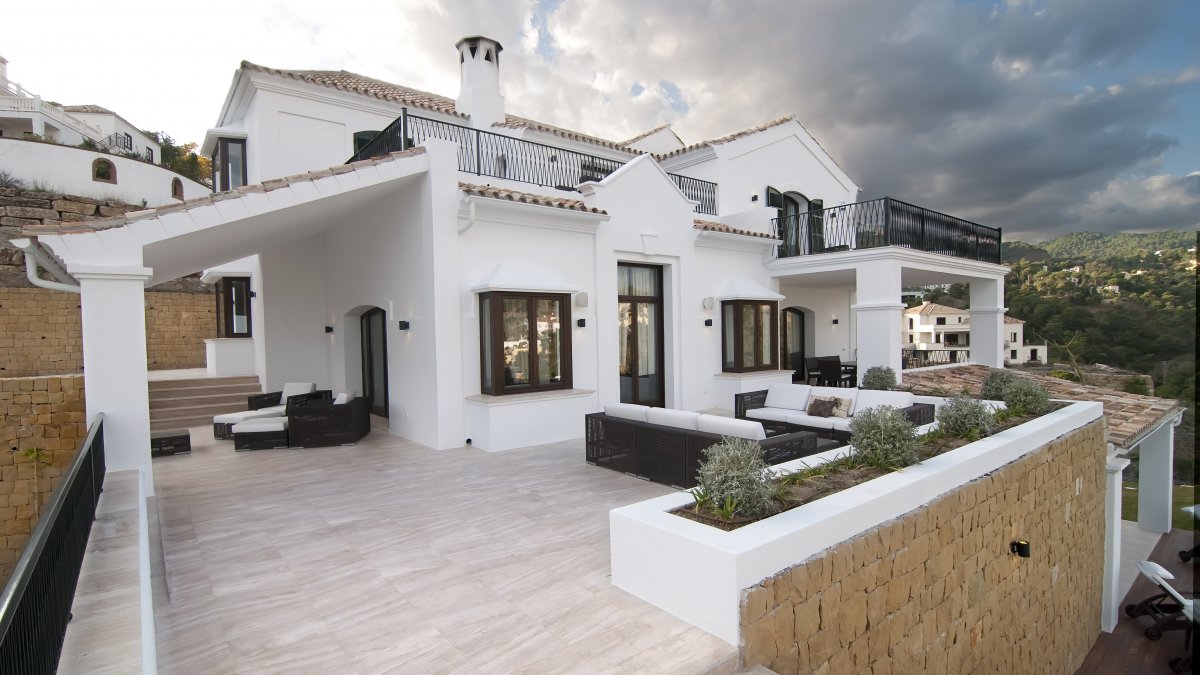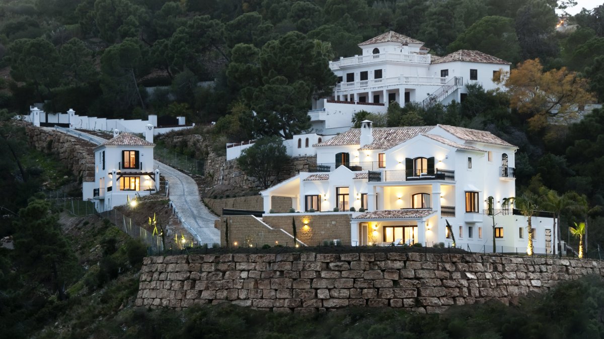 Spectacular luxury villa for sale in the Madroñal urbanization, one of the most luxurious residential areas in the mountain, in Benahavis, Costa del Sol. The house was built in 2012 with top quality finishes. It was designed by the prestigious Marbella architect, Cesar de Leyva, with a classic style on the outside and a modern one on the inside. From the house you can enjoy spectacular views of the sea and the mountains. The villa is located in a very private area, with an entrance guarded by 24 hour security. The property consists of a main house of 815 m2 and a separate guest house of 211 m2.