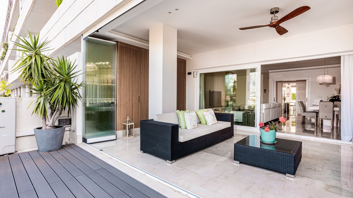 This is a 3 bedroom, 2 bathrooms 1 guest toilet ground floor apartment for sale. With La Corniche´s elevated position, this ground floor level does not comprise the incredible views. Inside, the property boasts a stunning open dining and living area which is flooded with natural light. The kitchen is modern and sleek with fully fitted appliances. Direct access to the fantastic terrace which is covered and can be enclosed with glass windows if wished.