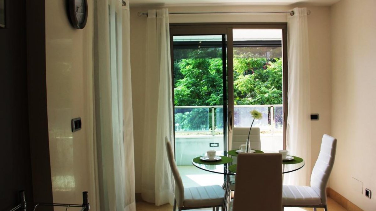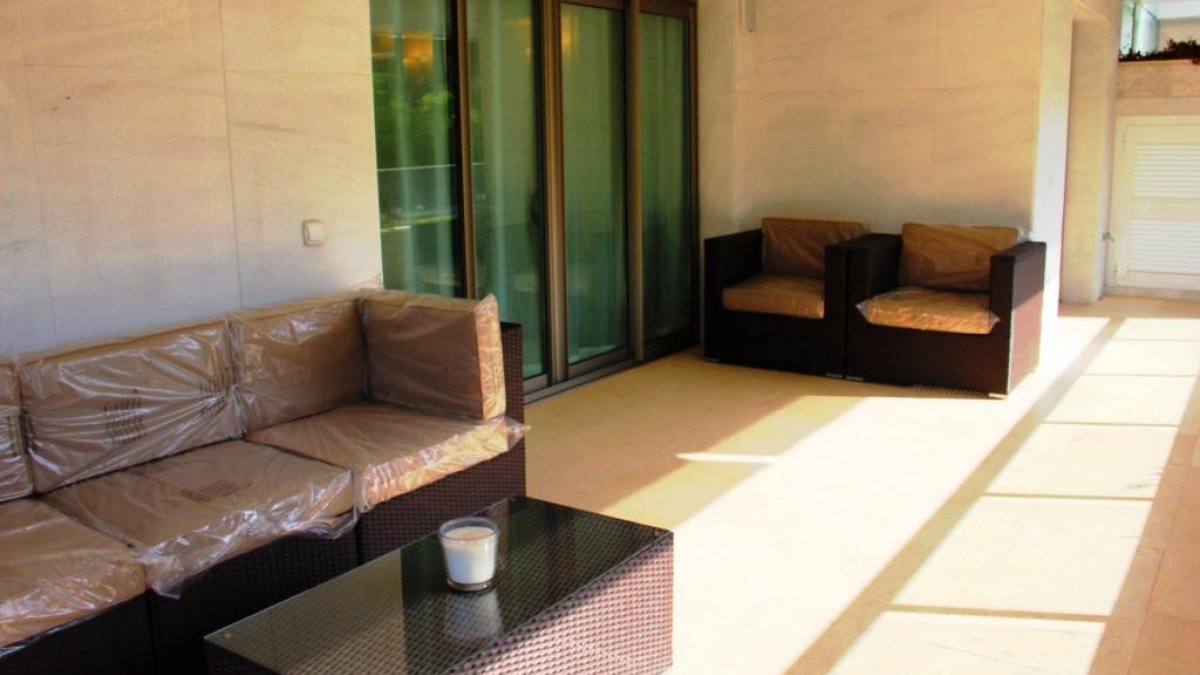 La propiedad ofrece un salón acogedor y luminoso con acceso a espaciosa terraza y vistas a jardin y montaña, 2 dormitorios, 2 baños, aseo, cocina totalmente equipada con electrodomésticos Miele, sistema domótico, A/C, sistema de alarma. Plaza de garaje.