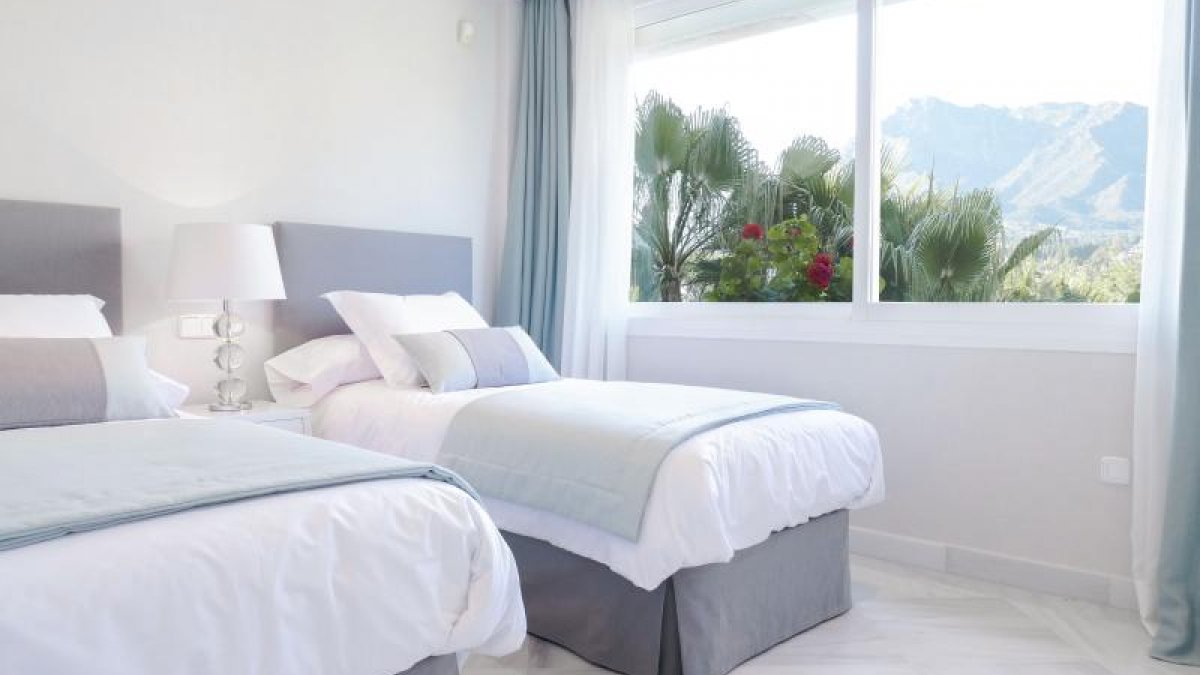 El apartamento en si consta de 130 m2 con orientación Este y visión al mar y jardines . Cuenta con hall de entrada, cocina completa, salón y terraza, suite principal con baño y dormitorio secundario con su correspondiente baño. Dispone de Aire Acondicionado y Calefacción, TV LED de 40” en el salón. Caja fuerte. Plazas de parking cubierto y trastero para larga temporada. El complejo dispone de Seguridad 24h, Conserjería, Parking de invitados, gran hall de visitas, piscina de verano, piscina infantil, jacuzzi, sauna ,gimnasio y acceso directo a la playa. A corta distancia del edificio disponemos de supermercados, farmacia, bancos, restaurantes, cafeterías y todo tipo de servicios. La cocina consta de: -Nevera/congelador. -Lavadora. -Secadora. -Lavavajillas. -Vitrocerámica. -Campana extractora. -Horno. -Horno microondas. -Cafetera. -Calentador de agua. -Tostador. Precio corta temporada consultar. Localizacion: C/ Pepe Carleton 1, Edificio Marina Mariola, Area: Marbella Golden Mile